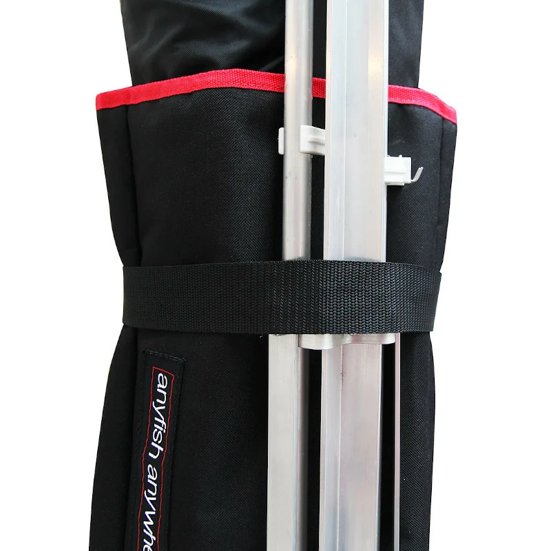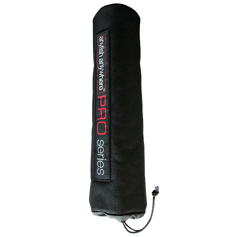 The Anyfish Anywhere Pro Series Holdall & Hood, made here in the UK and designed to offer exceptional protection for your rods in transit. Manufactured from a tough Oxford 600D waterproof material reinforced with bonded threading and fitted with quality components and webbing. Essentially a quiver type holdall, with an additional sleeve that goes over your rod tops providing that full protection offered by a traditional holdall. Carrying an impressive amount of kit with two padded double pockets, one for your rods and the other to accommodate a shelter. There’s also a further additional pocket with a reinforced base to take a tripod too.Â