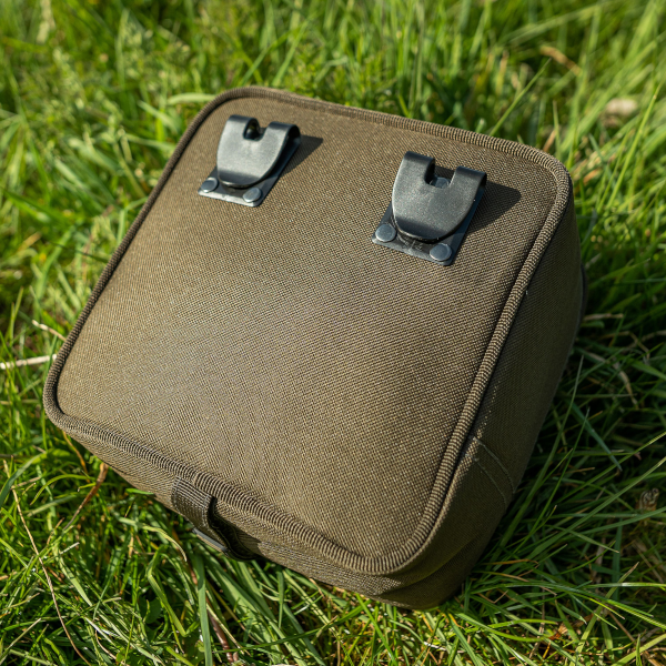 Two sizes of tackle pouches that are completely interchangeable with the rest of the compound range. The smaller size is ideal for taking an array of smaller items like leads, leaders and hooklinks etc. While the larger option is great for storing  everything from catapults, PVA systems and Spombs to alarm heads and swingers. You can combine these pouches to any of the other bags and accessories in the range to individually tailor your storage to meet your own needs. Â