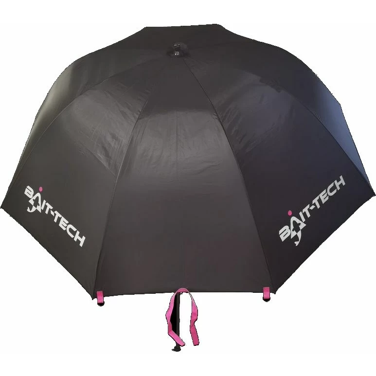 A lightweight dark black umbrella sporting the Bait Tech logo and most attractive pink highlighting. With pegging points so you can secure them in bad weather.