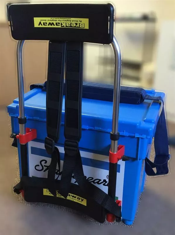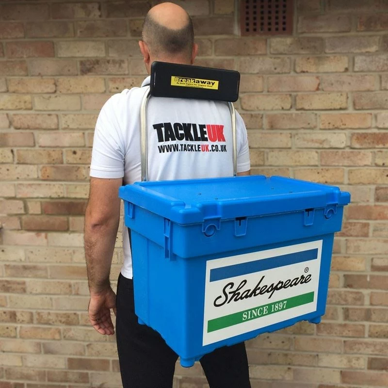 - For years anglers have struggled along shingle beaches with boxes slung across one shoulder either slipping and sliding or slowly strangling there owner. Once you have arrived at your peg the best you have got is an uncomfortable box to sit on. The Breakaway Backrest conversion fits onto the Shakespere boxes and is the best one for the job is the smaller Beta box but will fit the larger model as well but the bigger the box the more you will fill it and the heavier it gets. Once fitted those long walks will be a pleasure as the carrying harnes will hold the box onto the middle of your back and distribute the weight evenly leaving your hands free to carry your fish and other tackle.
