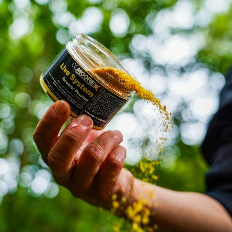 A range of fine quality booster powders designed to compliment CC Moore’s existing bait and boilie range. Available in Pacific tune, live system & Odyssey XXX flavours. Combined with a matching liquid, they provide a coating akin to the live system which will dissolve gradually over time slowly releasing more attraction and appeal immediately around your hookbait. Available in both 50g and 250g sizes. The smaller ideal for coating a few hookbaits with the larger option great for treating larger batches in one go.