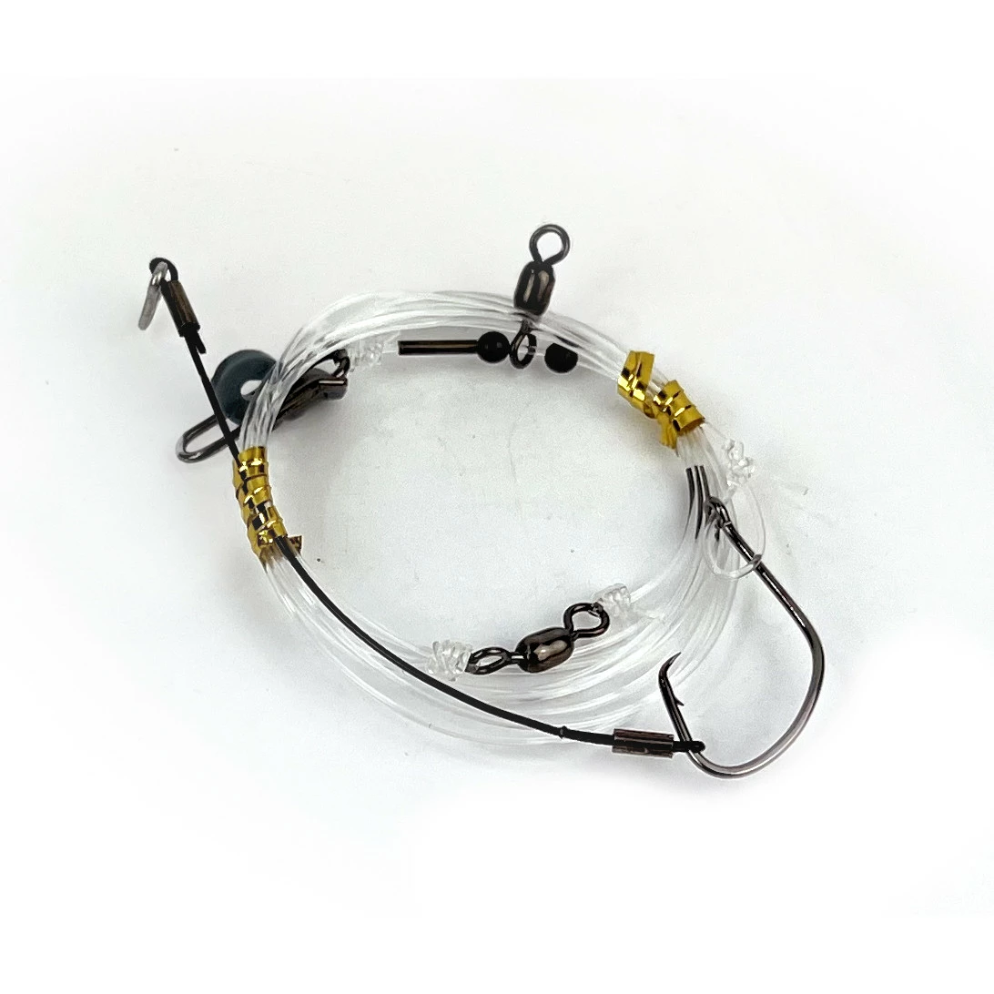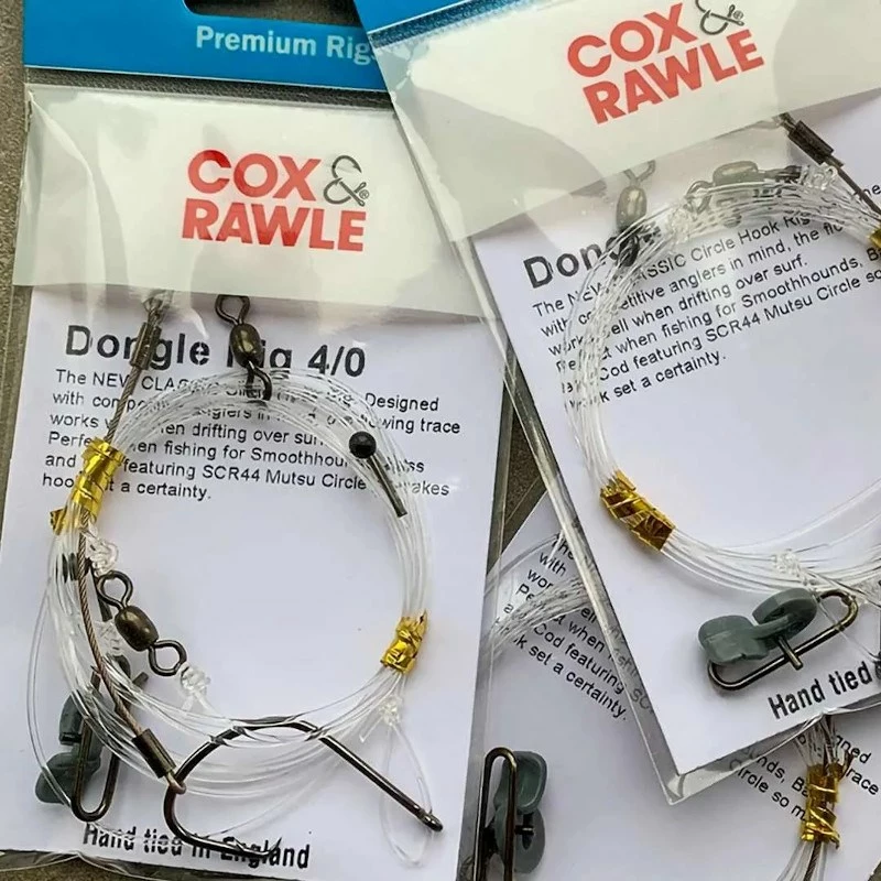 The Cox & Rawle Dongle Rig Wire version, a unique introduction to the British market of an idea developed by angler in South Africa. The dongle rig allows you to mount your bait directly below the hook, much like a hair rig. Not only offering exceptional aerodynamics for improved casting performance when clipped down. The Mutsu circle hooks are designed to essentially let the fish hook themselves. With a hookhold in the side jaw that can easily be removed for better conservation with catch and release.Â