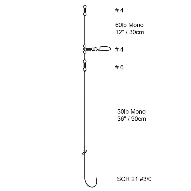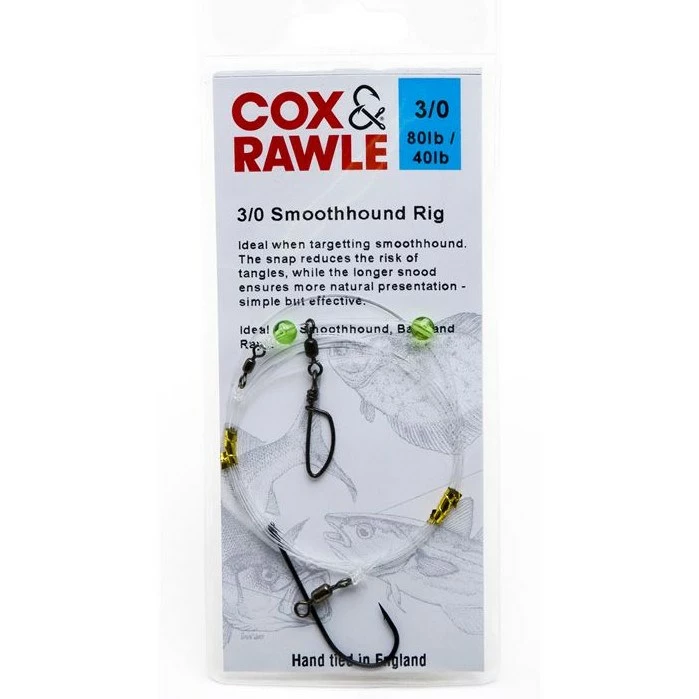 Cox & Rawle Smoothhound Rig 3/0, ideal ready made rigs when targeting smoothhound. The pennel set-up increases hook-up potential and allows large baits, such as squid and crab, to be presented. The snap reduces the risk of tangles, while the longer snood ensures more natural presentation, simple but effective.
