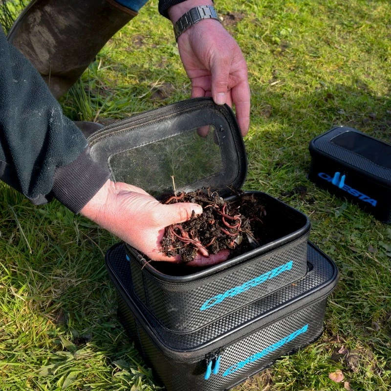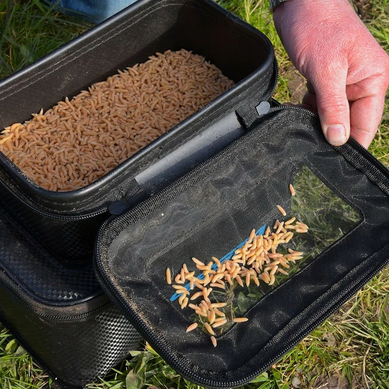 High quality zipped EVA containers with a zipped breathable mesh top so they can be used for keeping maggots and live baits as well as smaller tackle items. Â Â Â