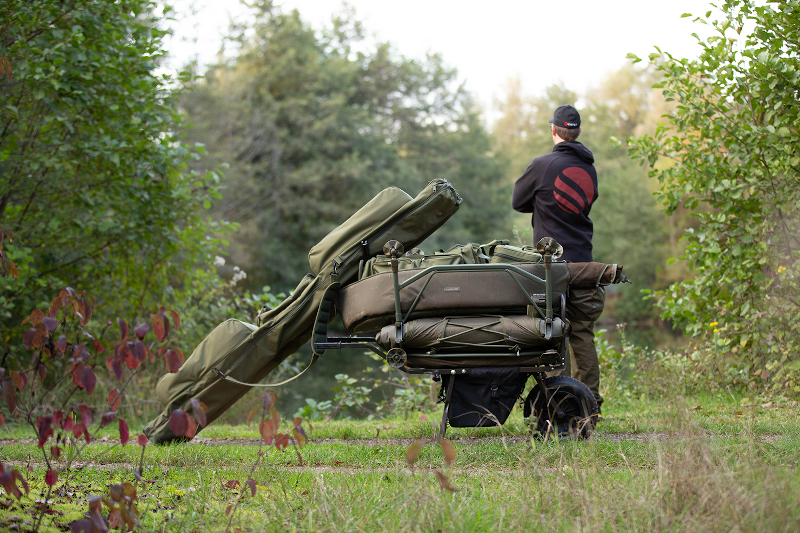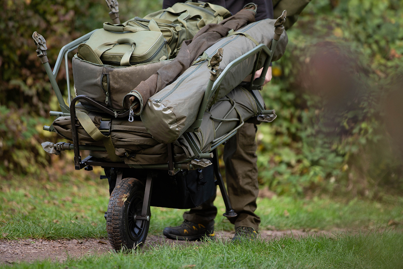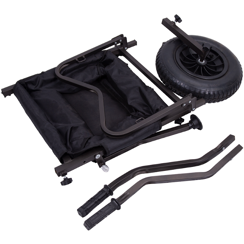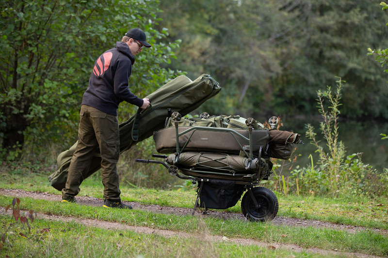 An ultra-lightweight compact transporter with a low centre of gravity that disassembles and packs down flat. Great if you are limited on vehicle space, and need a solution that easily fits in the boot of your car. With a large removable central heavy duty under bag below, and a curved dipped front bar for locating your bivvy or holdall in place. The load area itself extends, giving you more floor space so you can squeeze a few more items on the topÂ