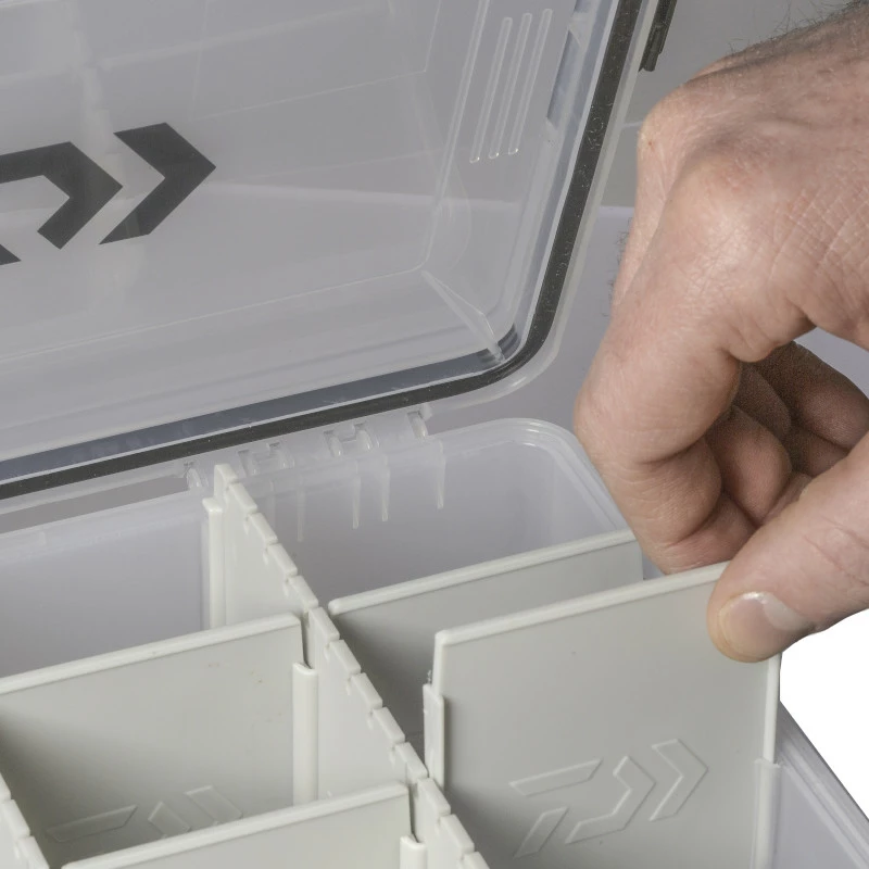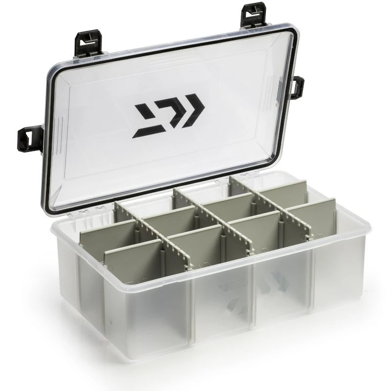Daiwa Deep Bitz Boxes, supertough clear plastic tackle boxes with a rubber sealed clip lock lid. Ideal for storing an array of terminal tackle these larger capacity deeper versions can happily hold larger feeders too.