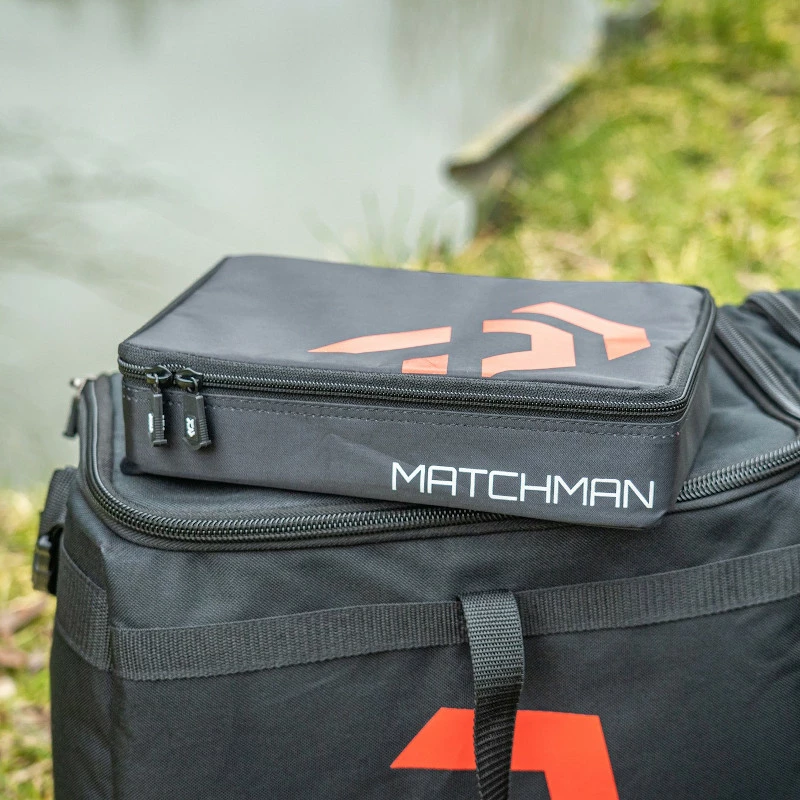 The Daiwa Matchman Divider Bitz Bag, a full zip up accessory case with two trays that fit neatly inside. An ideal place to store a wide range of smaller tackle items with the bright red trays making picking out smaller items easier.