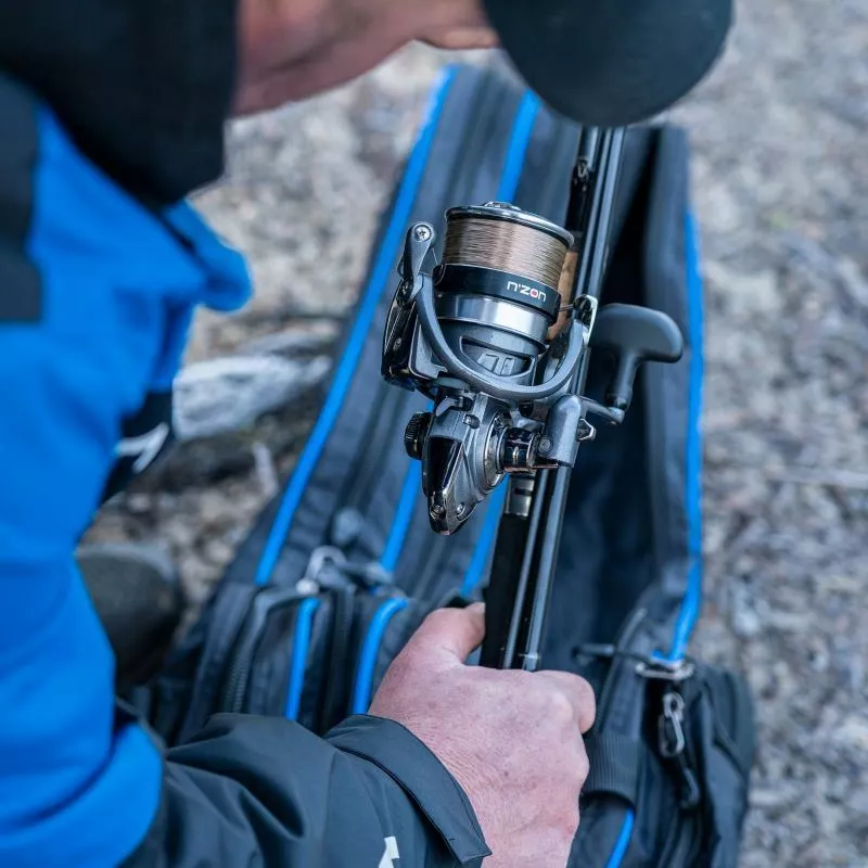 Daiwa N’zon Rod Holdalls, available in two and three rod versions designed to carry three individual rod and reel setups. Ideally suited for 3 piece rods of up to 14ft. They feature two way zips for easy access and have additional storage in the form of two external compartments. One ideal for taking your feeder tips and the other for housing bankware and accessoriesÂ