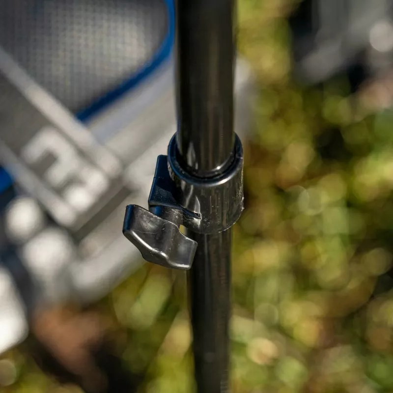A high quality lightweight nylon canopy with a strong steel frame and ribs. Featuring fully taped seams and additional D rings for pegging down in serious weather. The central pole has a multi-tilt operation and can be detached and repositioned at a fixed angle.