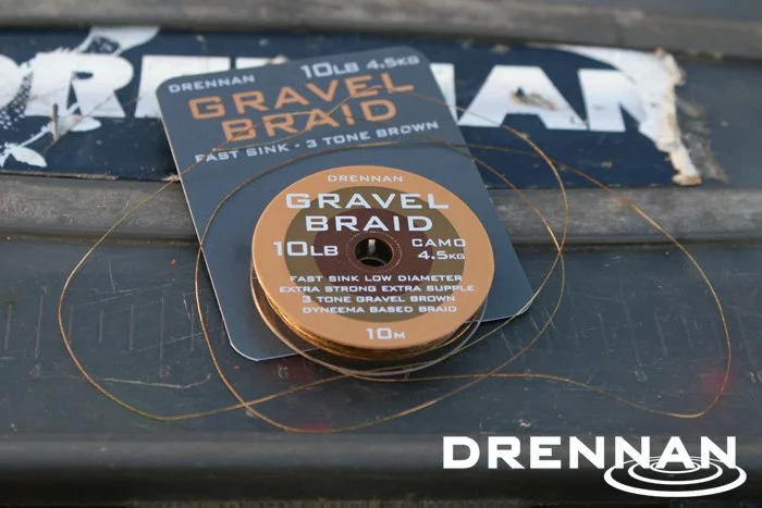The frequent colour changes of Drennan Gravel Braid helps to break up the line of the hooklink as it lays along the bottom. Similarly the three different brown tomes provide seriously good camouflage when fishing over gravel on lakes or rivers. This extra strong, extra supple Dyneema based braid makes a great hooklength material for the specialist big fish angler. Available in 8lb,10lb,12lb & 15lb.