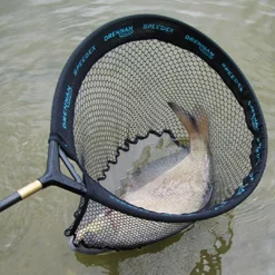 Specialist match landing net heads from Drennan designed to land carp fast ‘n easy! The open mesh sides reduce drag and allow the net to be manoeuvred through the water at top speed. During prototype testing, Five Times World Champion Alan Scotthorne found some carp seemed to view the light coloured micromesh base as an escape hole and dived straight in!