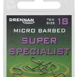 Drennan’s super specialist micro barbed eyed hook pattern is made from a medium gauge high carbon carbon wire with a ground and chemically etched needle point. A go-to hook of choice for specimen fish of all sizes.Â