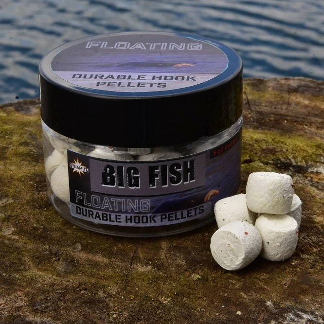 A range of tough hookable floating hookbaits to match Dynamite’s Big Fish boilies.  Soft enough to hook directly, but tough enough to hair rig and cast at distance. On contact with water they offer plenty of leakage that oozes out across the surface.