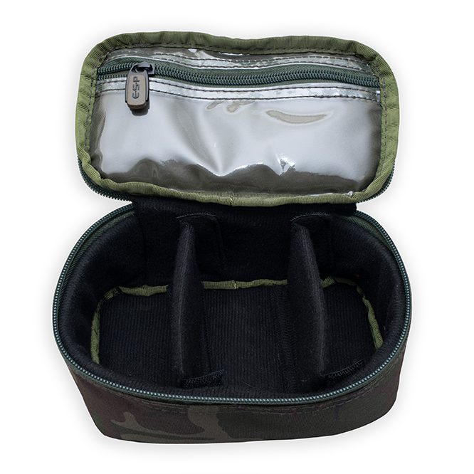 - Zipped and padded throughout, with padded dividers separating the main compartments and a re-enforced base. There’s even a zipped clear PVC pocket on the inside of the lid that’s perfect for keeping licenses, spare leaders or swivel and clip attachments for your leads.