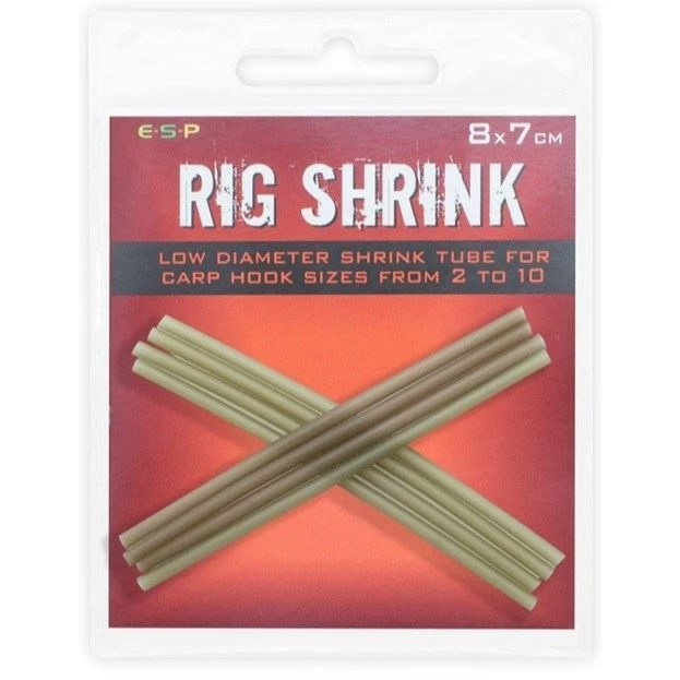 ESP rig shrink is a specialist low diameter shrink tube designed for the production of neat and tidy anti-eject rigs. Offering a 3 to 1 maximum available shrink ratio for all the popular carp hook sizes from 2 to 10. Specially formulated so that it is just stiff enough to take and retain any angle or bend set in during shrinkage.
