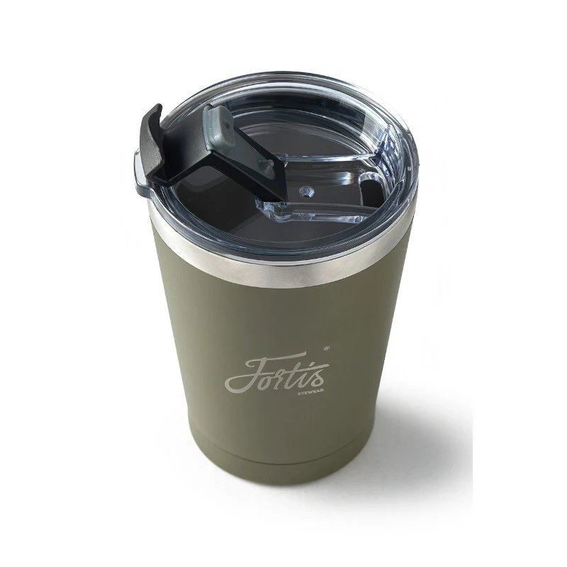 The Fortis Recce Mug with a double wall of insulation that will keep a cup of tea hot for up to 8 hours, and cold drinks cold for up to 12. The lid has a simple slide to lock spout and will also prevent the tragic loss of a cup of tea should you knock the mug overÂ