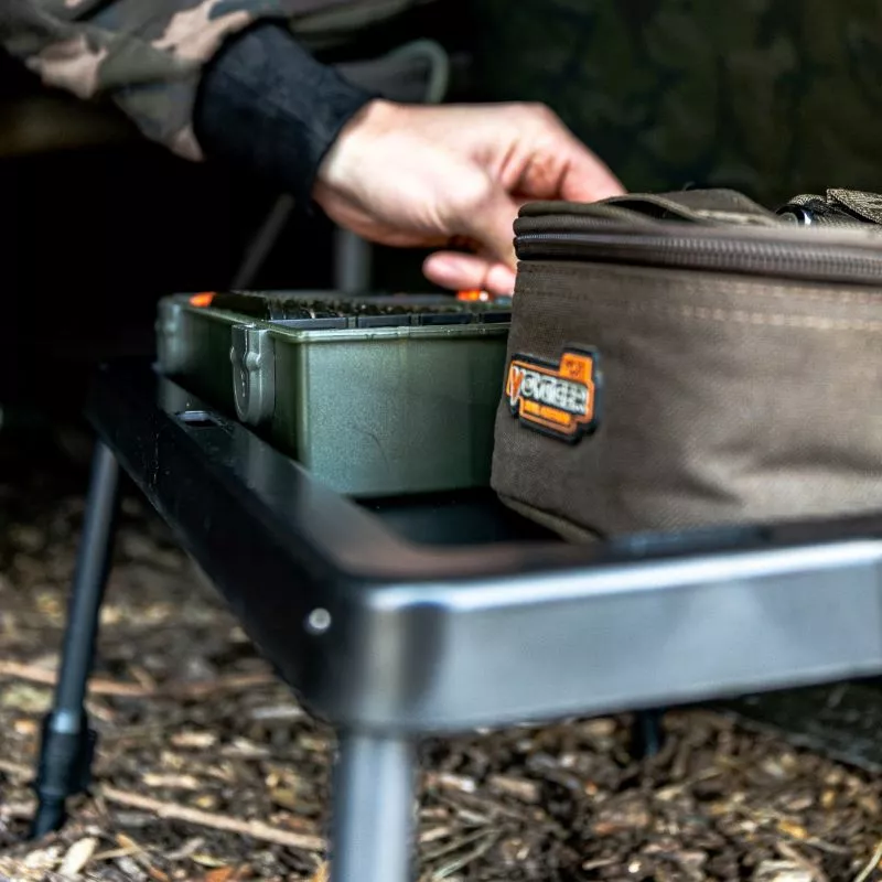 Achieving a perfectly organized bivvy is a satisfying experience for any carp angler. For years, bivvy tables have been a go-to for achieving this feat. The Fox Bivvy Table takes this to the next level with its extremely compact design, ensuring it takes up minimal space in your bag or can be folded inside your bed chair as recommended by our consultants. The spring-loaded legs pop into place and fold away effortlessly without the need for unscrewing, while the Fox cam lock mechanism makes adjusting the legs a breeze. Measuring 47cm in length and 30cm in width, this table provides ample space for all your essentials, including your power pack, phone, tackle box, hook baits, rigs, and more. Don’t let cluttered gear ruin your bivvy, choose the Fox Bivvy Table for a tidy and organised setup.