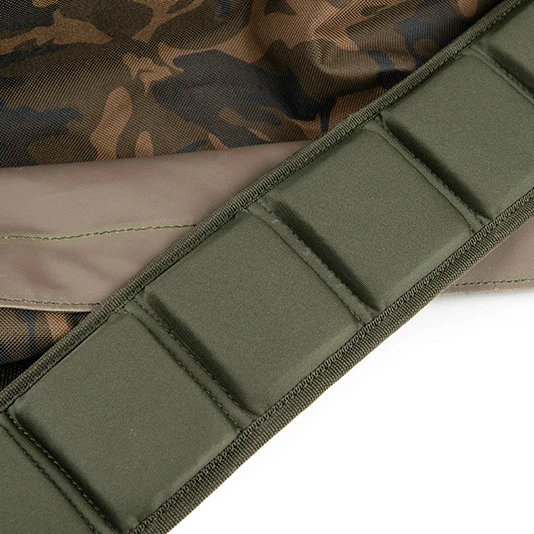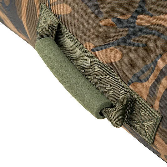 Fox Camolite Bed Bags, lined and padded carry bags to take your packed down bedchai. Manufactured from a tough hardwearing 5000D material with a water repellent treatment. They’re fitted with reliable double heavy duty zips for easy access. With EVA grab handles and a removable shoulder strap.Â