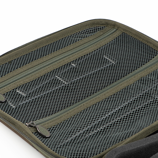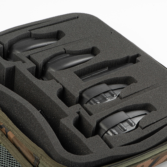 A dedicated protective stiff walled case designed to safely store your RX+ alarm heads. With space inside to house up to four individual head units, plus room for your receiver. There’s also two zipped compartments on the inside of the lid that will take a couple of compact buzzer bars and a pair of short banksticks.Â