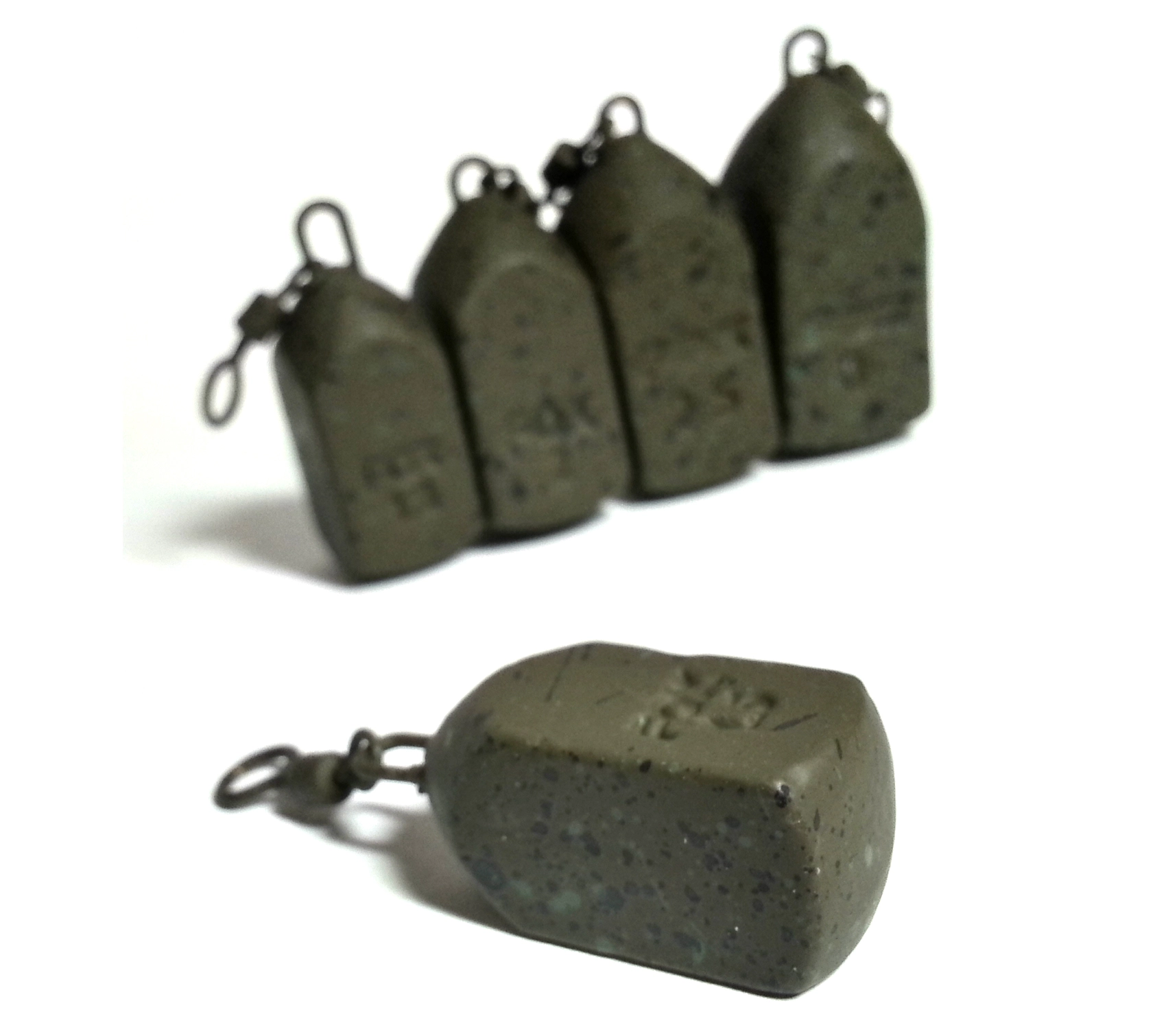 The Fox Camotex square swivel carp leads are ideal for helping you hold position when your targeting slopes and drop offs. The large angular shape prevents them rolling away from your chosen spot and also improves your hookup rates by offering increased resistance on the take.Â
