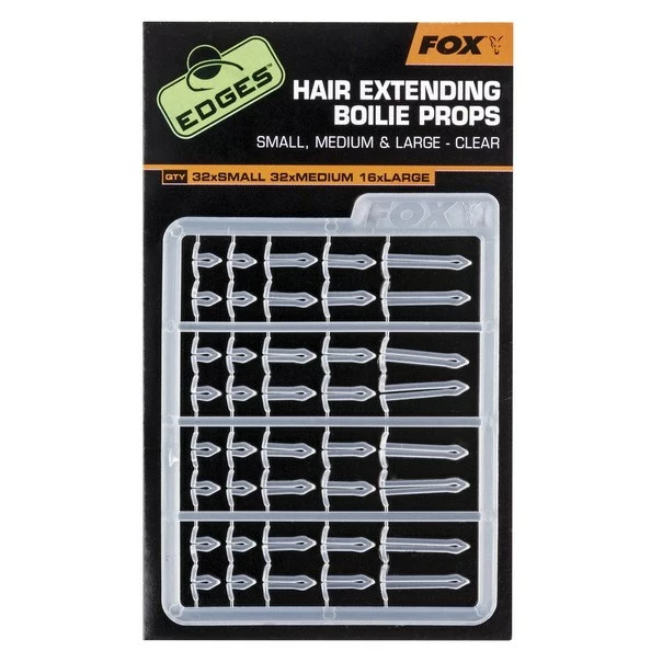 Hair Extending Boilie Props have been designed to allow the angler to change hook baits, size and quantity, without the need to tie a new rig whilst still retaining perfect working rig mechanics. The press out card has three different sizes of stops to match a variety of different sized bait options.
