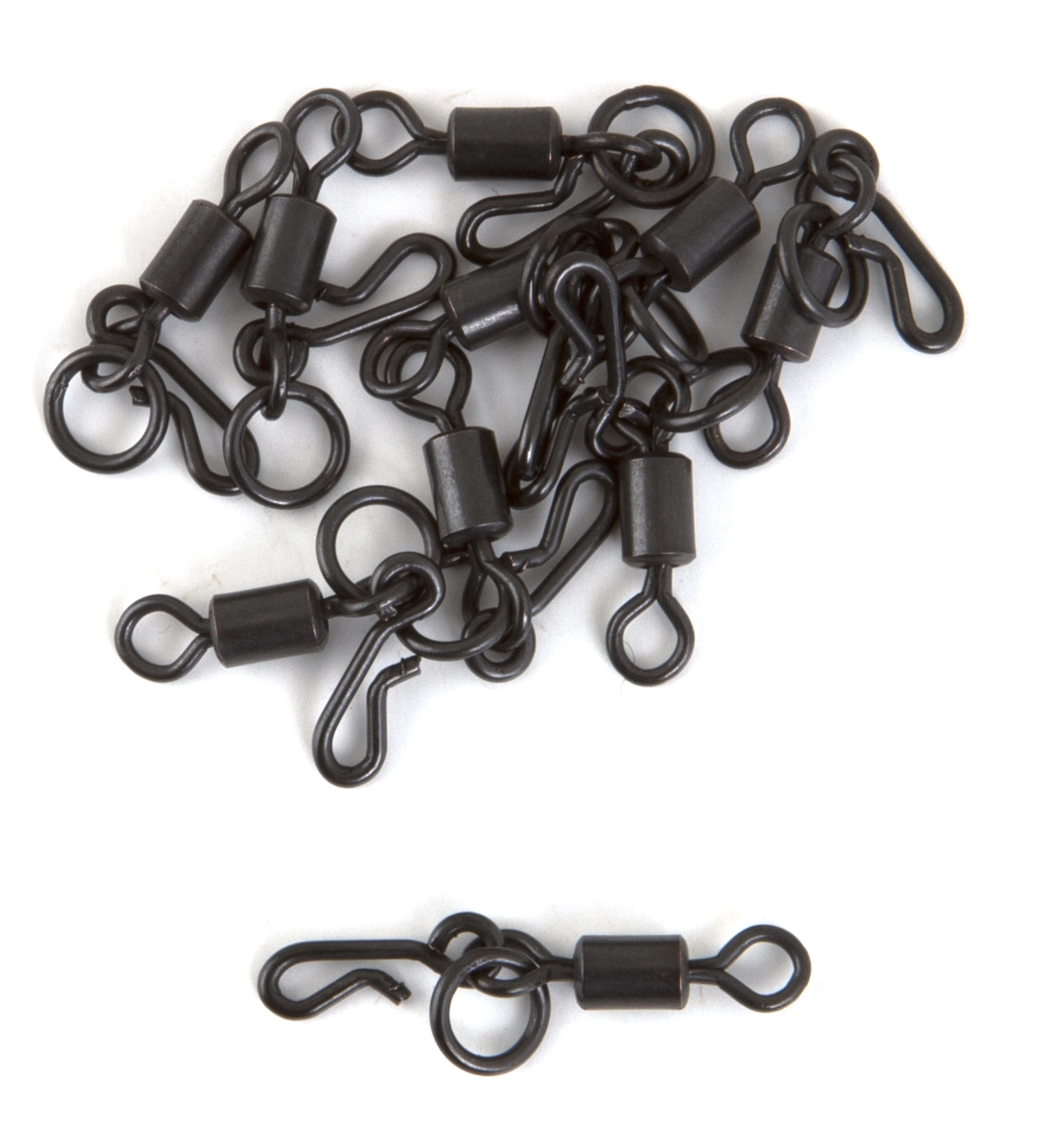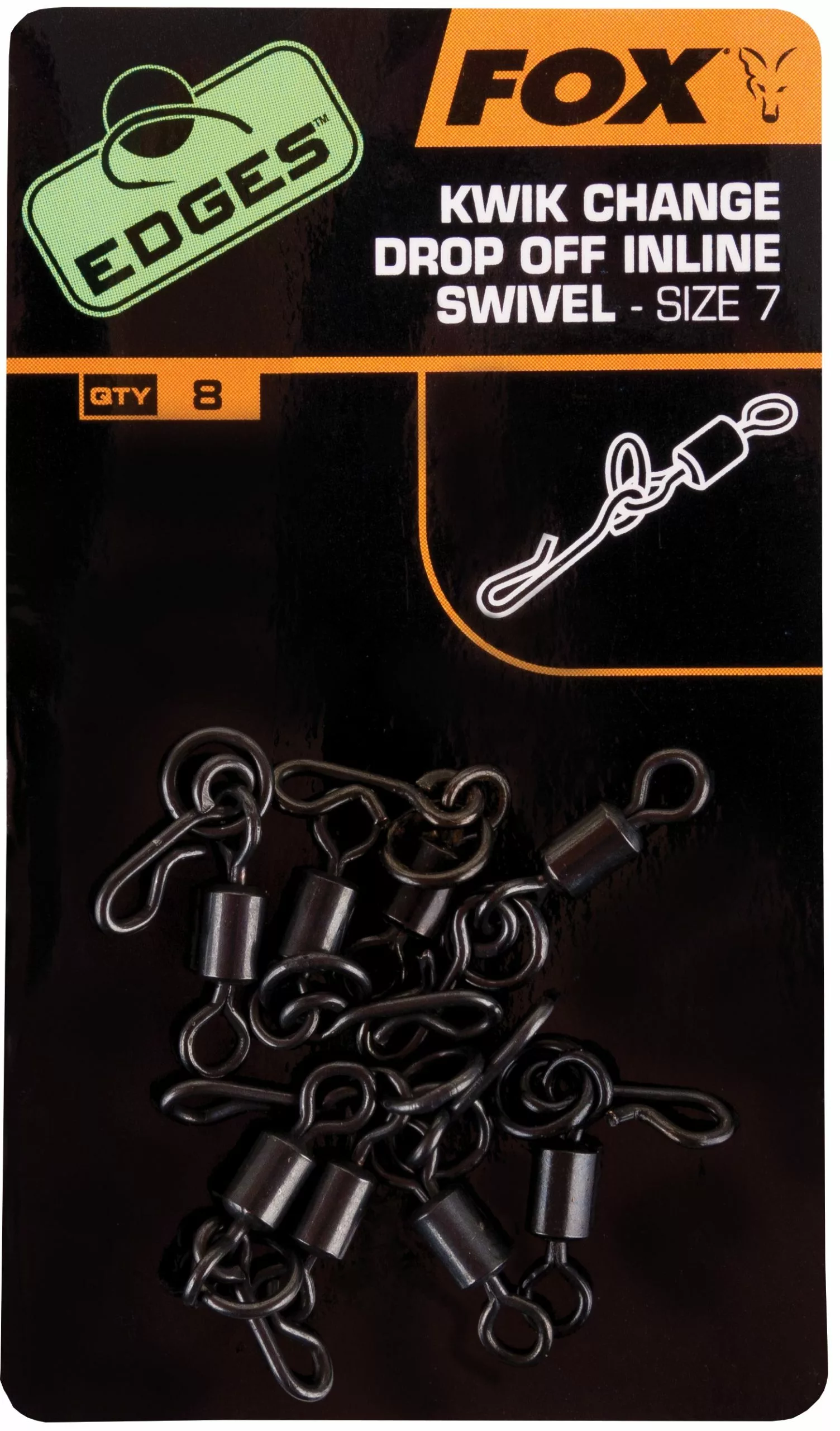 Fox Edges Kwik Change Inline Swivel, designed to offer a quick change solution to drop off inline rigs. Finished in a non reflective matt black coating.