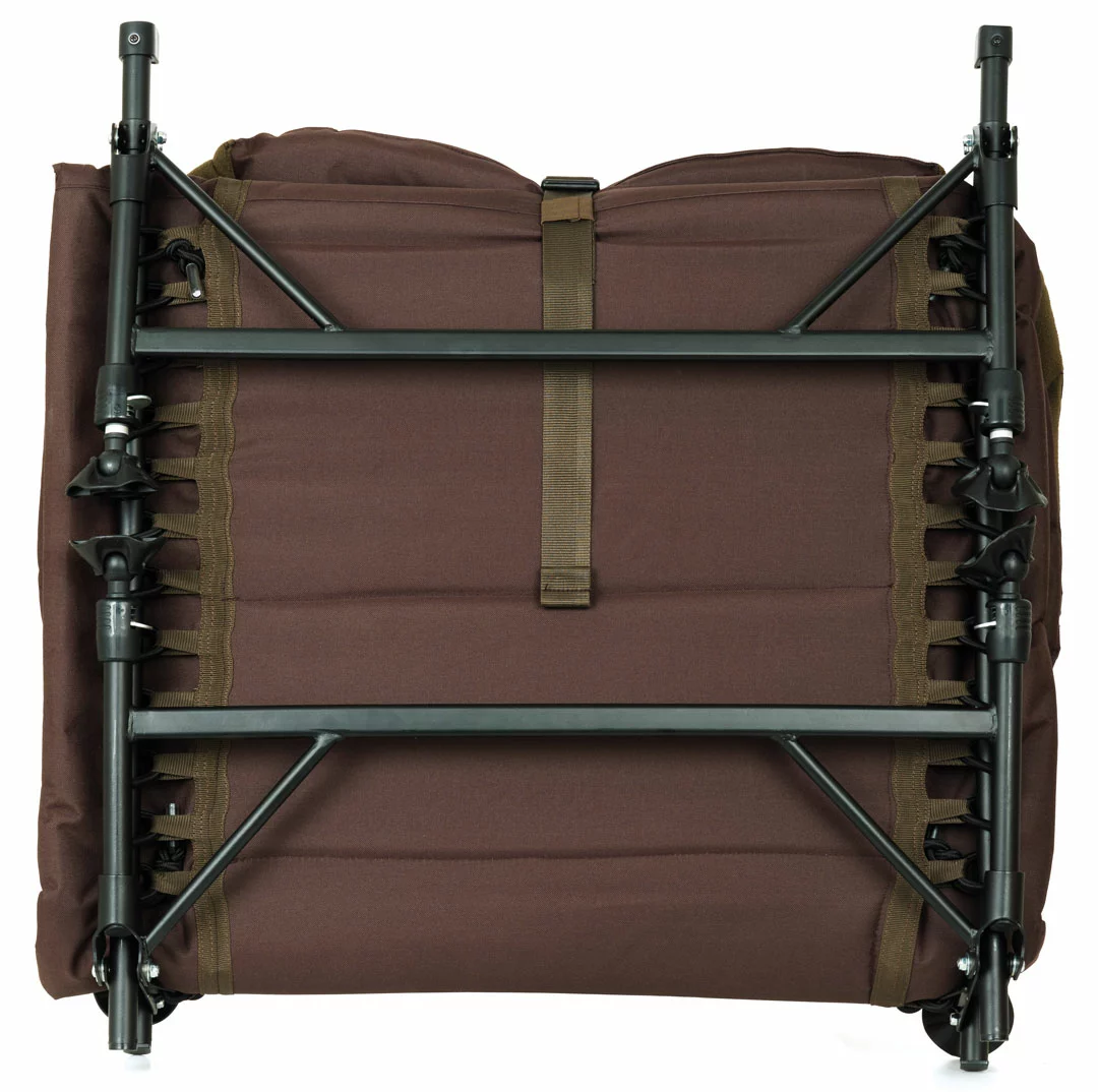 - The frame is flat, and all six legs can be extended which is ideal for setting up where slopes may hinder you.