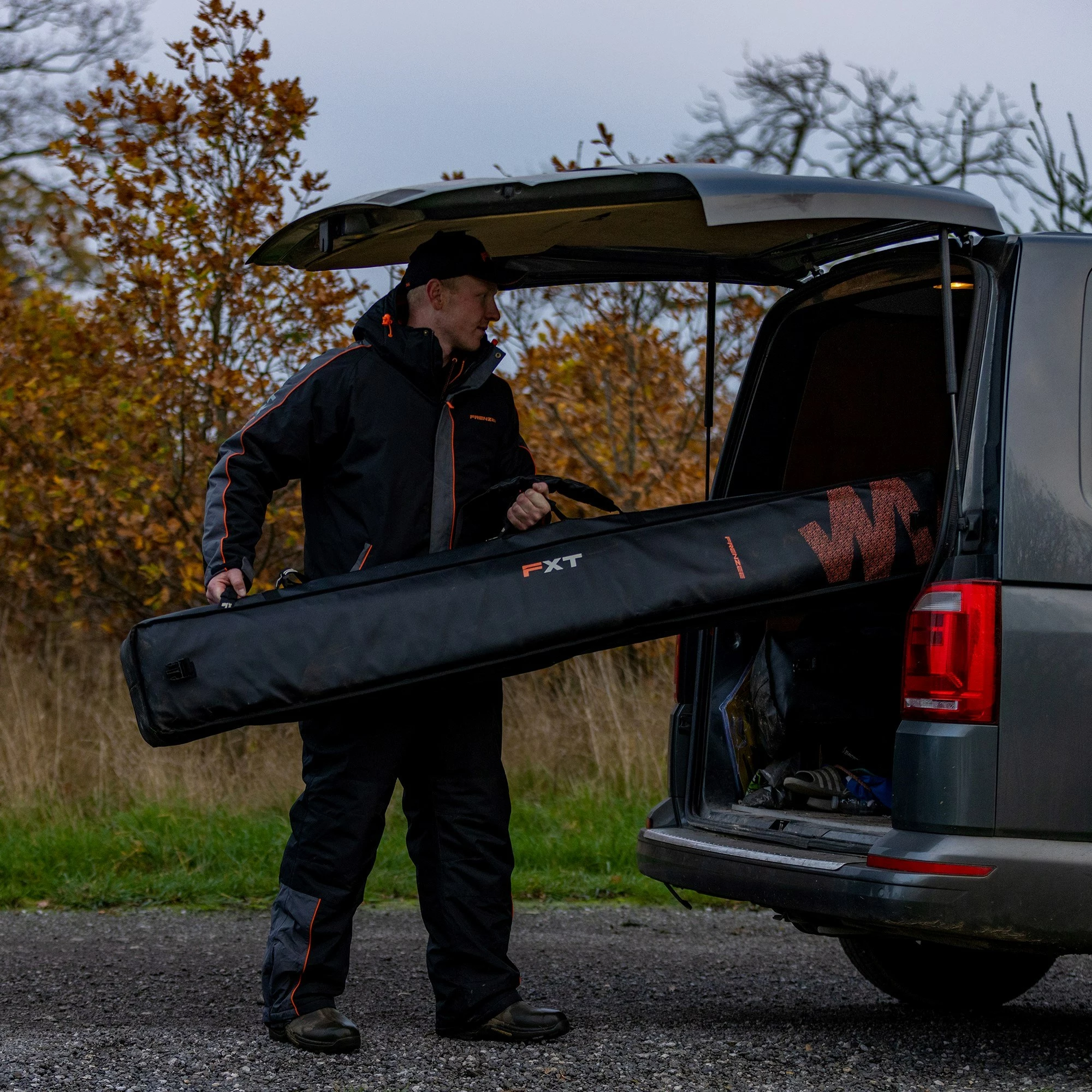 Frenzee’s FXT large capacity multi tube holdalls are ideal for taking everything you need for your next match. Available in either six, or eight tube sizes. They have a fully lined interior that will happily take your net handle, brolly and banksticks as well as you rods. The top end features a double zip envelope opening that extends down the side of the bag to make accessing shorter items easier. All the zips used are large sized and heavy duty and have soft touch pullcords to make them easier to deal with in wet weather. If your needing to take a pole too, the FXT Top kit case is designed to clip directly onto the holdall and is also available.