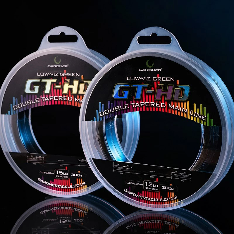 Gardner’s high quality GTHD flagship mainline with its unique co-polymer formula is now available in a twin tapered version. Giving you a strong 0.50mm leader that fines down over an 8m section to either a 12lb 0.30mm, or 15lb 0.33mm mainline. A great option for lakes and venues where leader bans are in force offering a way to use larger leads and cast longer distances without breaking the rules. Â
