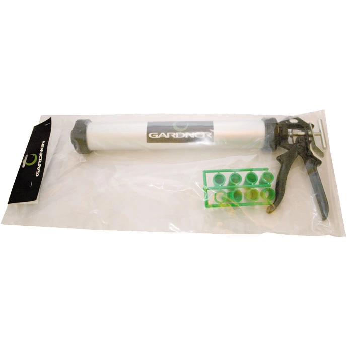 The Entry level sausage gun from Gardner to produce perfectly sized sausages for your rollerball. Perfect for small scale home bait making with your own choice of base mixes and recipes. Different base mixes can go through bait guns very differently. Therefore, you will often need to customise the nozzles to suit individual bases – as some expand slightly after extrusion. As a rough guide – finished sausages of boilie paste should be 80% of the diameter of the finished boilie, e.g. 20mm boilies require a 16mm sausage.