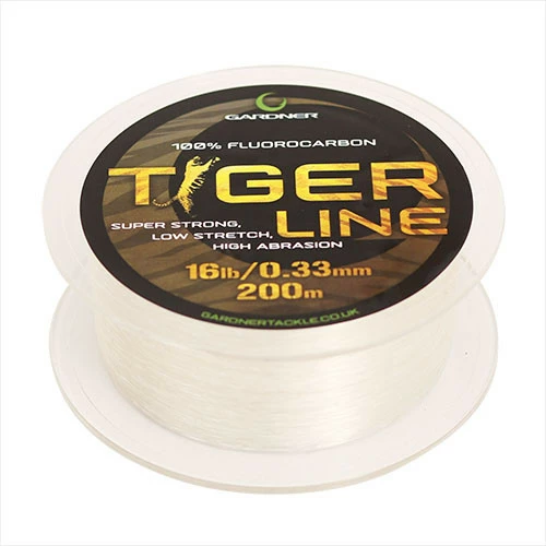 Tiger line is a high quality 100% fluorocarbon mainline formerly sold under the Big Carp brand, and now under the Gardner banner. A top class multi directional polymer with exceptional abrasion resistance and knot strength. A hardwearing choice for loading up your reels that resists deterioration in sunlight, and gives all the well known advantages of fluorocarbon.