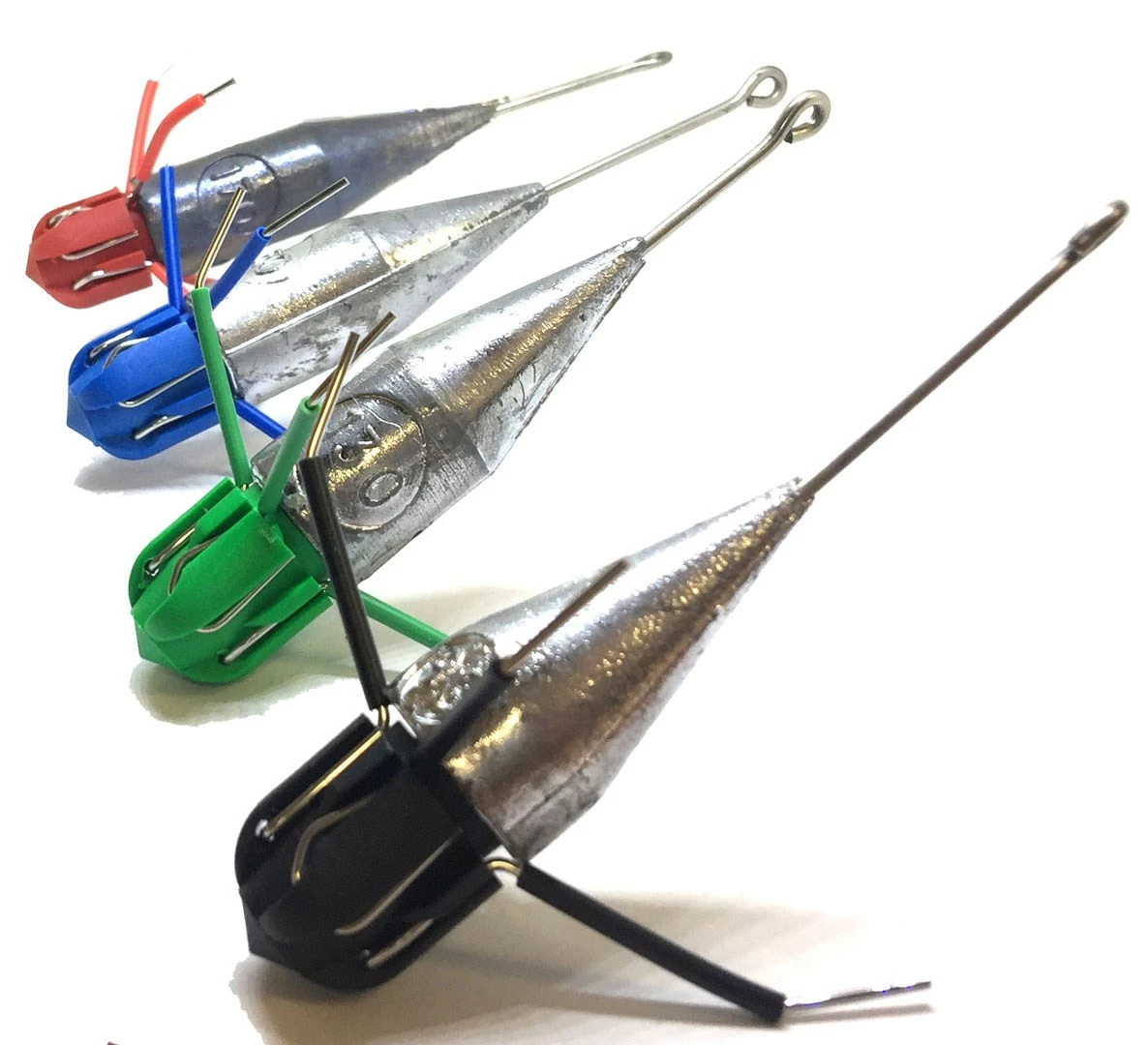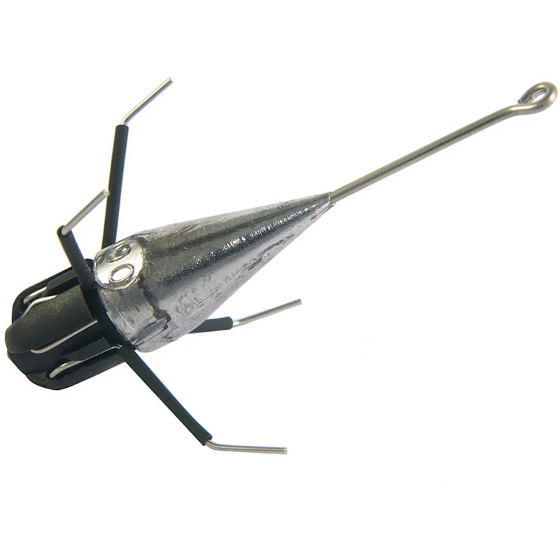 The unique design of the Gemini breakout sinker has distinct advantages over conventional break-out grip sinkers. Apart from the handy inter-changeability of the heads, The nose cone places the grips in front of the mass of the lead sinker. This alters the centre of gravity, bearing greater pressure on the grips into the sea bed.