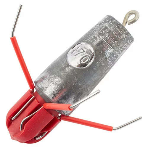 With excellent casting properties, only the eye of the tail wire protrudes from the flat end. The bait is held close to the sinker which causes less drag during flight and also fully protects the hook bait when it hits the surface.