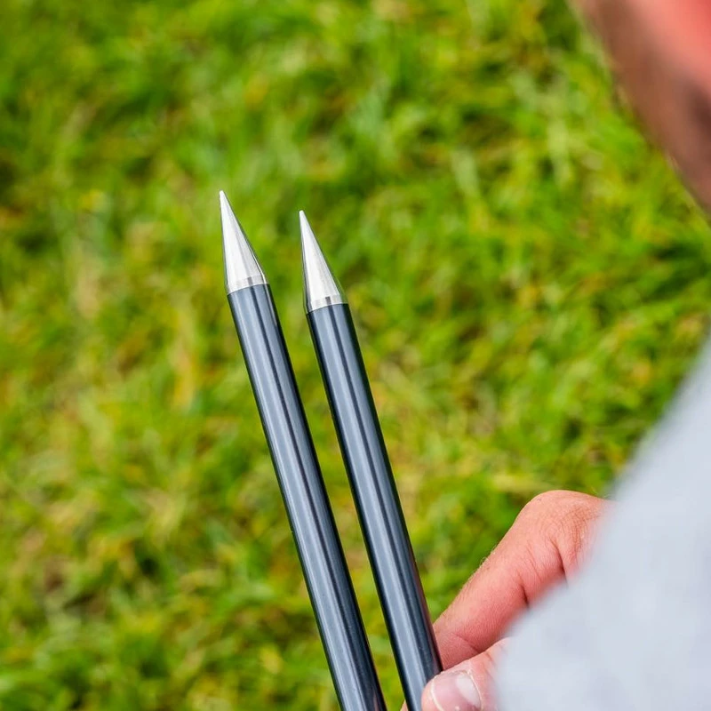 A pair of strong lightweight distance sticks for getting your casts bang on target every time. An idea carried across from specimen carp anglers. These are high quality hard wearing sticks that come with both a 2m and 3m cord, plus a 6 inch tommy bar that slots into the sticks to drive them into the ground. Each stick has a series of grooves to prevent line from spilling off sticks when being wrapped.