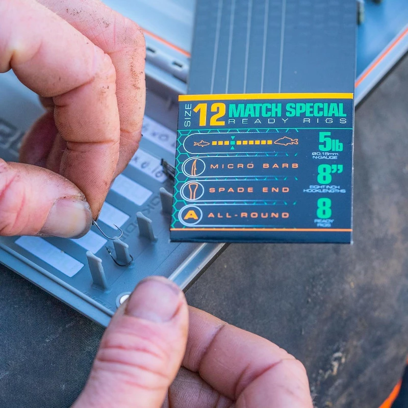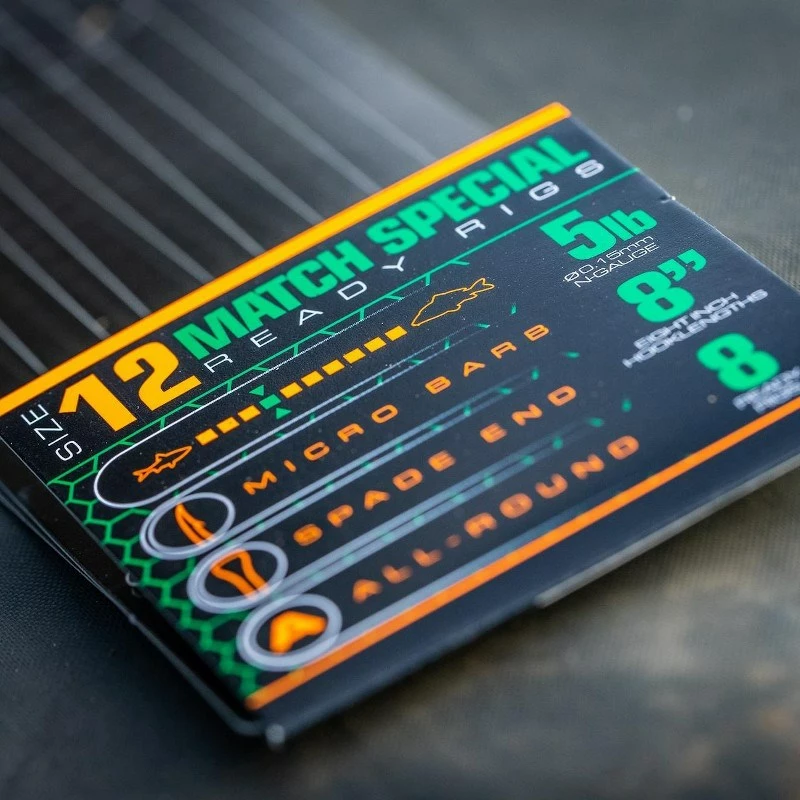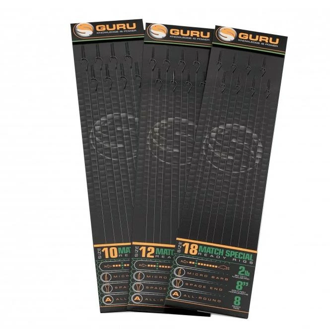 A shorter 8 Inch version of Guru’s Match Special Ready Rigs ideal for targeting silvers on natural venues. Featuring Guru’s Match Special medium wire hook pattern, with its flat wide gape and ultra sharp point. Paired with high quality Guru N-Gauge mono. With each hook size matched with a sensible breaking strain.Â