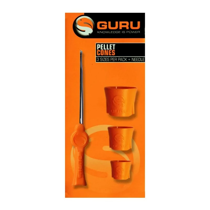 Guru Pellet Cones with 3 Size options in every pack plus a matching needle to thread your hooklength needle. Simply press one of these cones into a bait box full of softened pellets to create a nice neat cluster of bait that can be threaded onto the hook link and cast out. Once on the lakebed, the pellets drop away from the hook link depositing a mouthful of bait right bang on target around the hook bait.