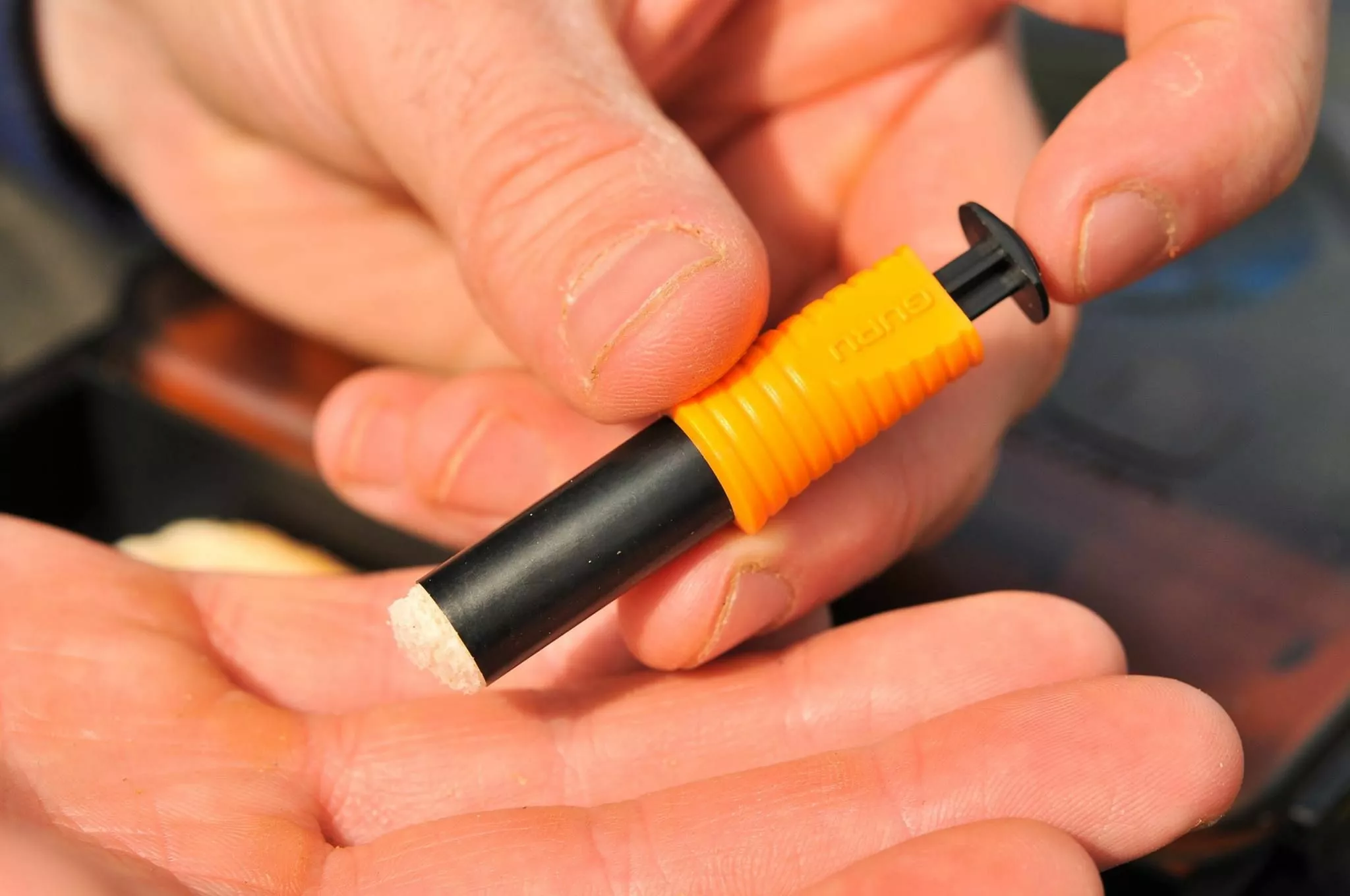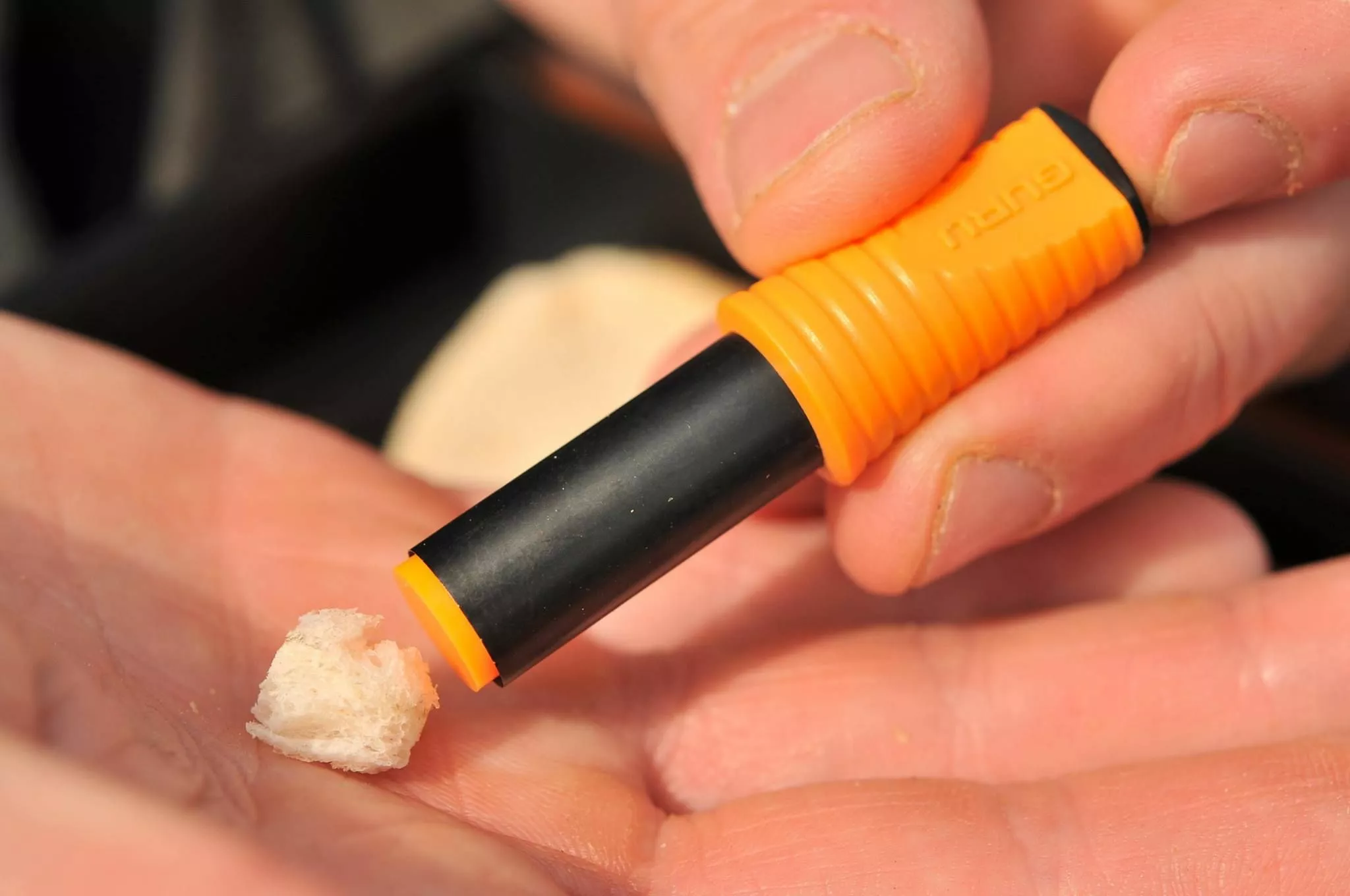The Guru Punch Box,  a simple storage system complete with a set of bait punches that allows you keep your bread punch hook bait in prime condition. Packing down neatly into your bait bag or seat box with a minimum of fuss and with an easy to operate sliding lid system. Perfect for meat hook baits or popped-up bread disks, to trotting or feeder fishing rivers with punched flake and meat offerings. The lid slides back over once you’ve punched and mounted your baits preventing any drying out.