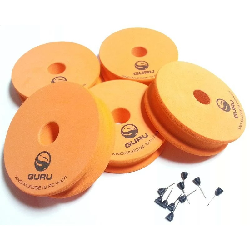 Guru Spare EVA Rig Spools, simply nick the hook into the EVA spool and wrap the hook link around it. Then pin the loop or swivel into the spool. To attach several rigs to the same spool, place the hook of each additional rig through the loop or swivel from the last. This process can then be repeated up to 20 times.