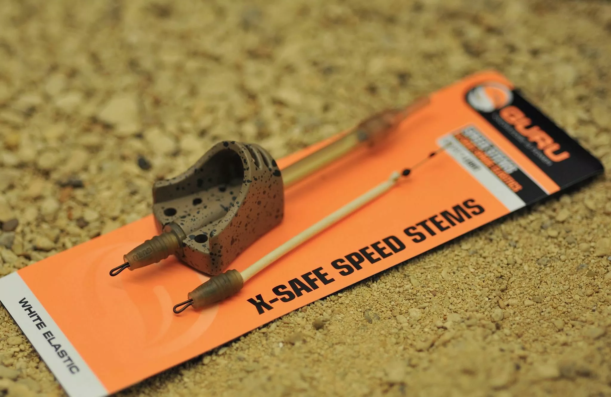 Replacement stems for your X-safe feeders for a lightning fast change of rig or feeder. Designed by Guru to be totally fish-safe, and fit all of the same-brand lead systems. Available in two lengths for short and medium to long-range fishing and two elastic strengths, black and white. The black (heavy) elastic is great for larger carp and big bream whilst the lighter white version is perfect for F1s, bream, skimmers and smaller carp.