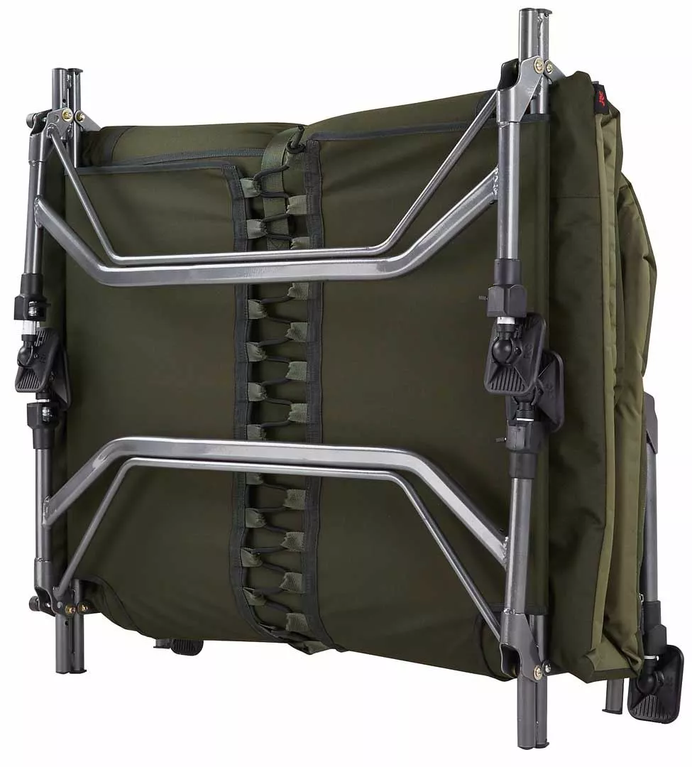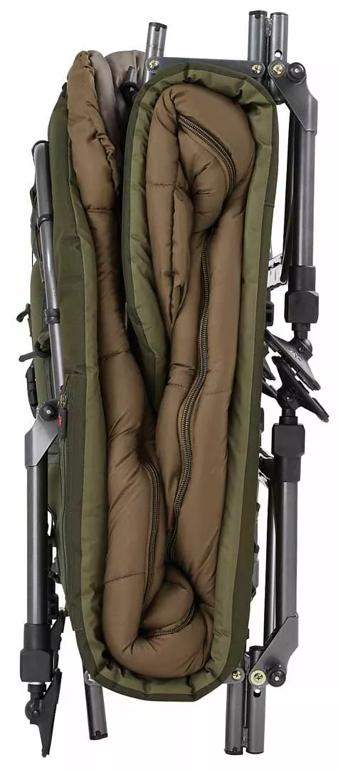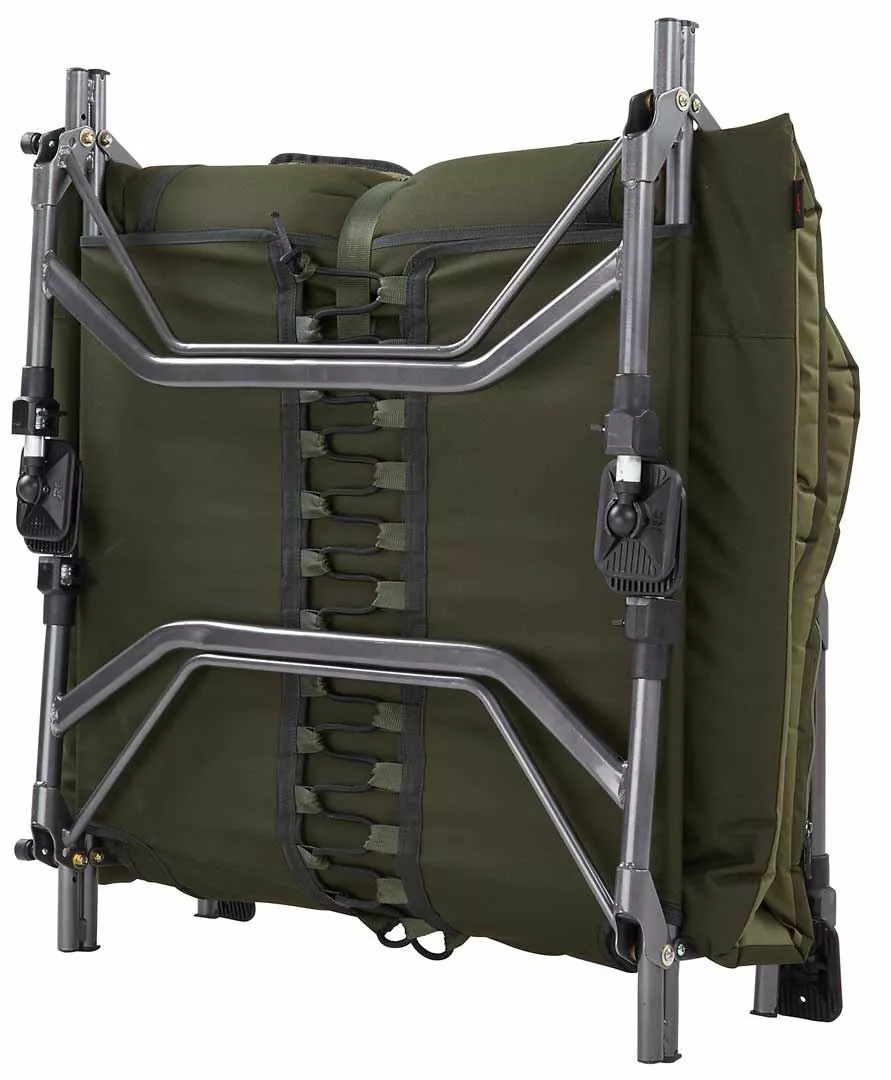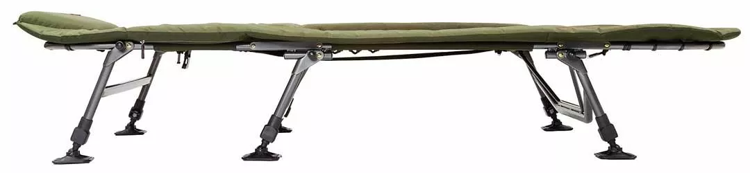 A low mass aluminium frame assembly enables a completely flat sleeping experience, hence the name. The extravagant dense padded mattress, joined with the anti-sagging system offers fantastic comfort when out on the bank. This is the next generation in bedchair design.