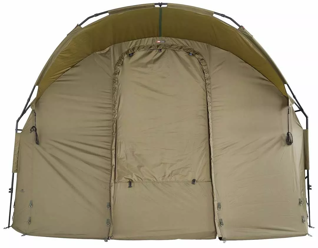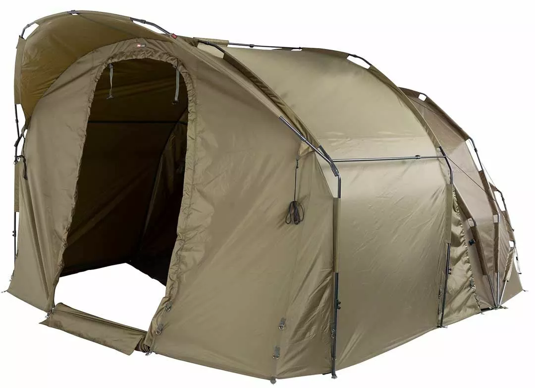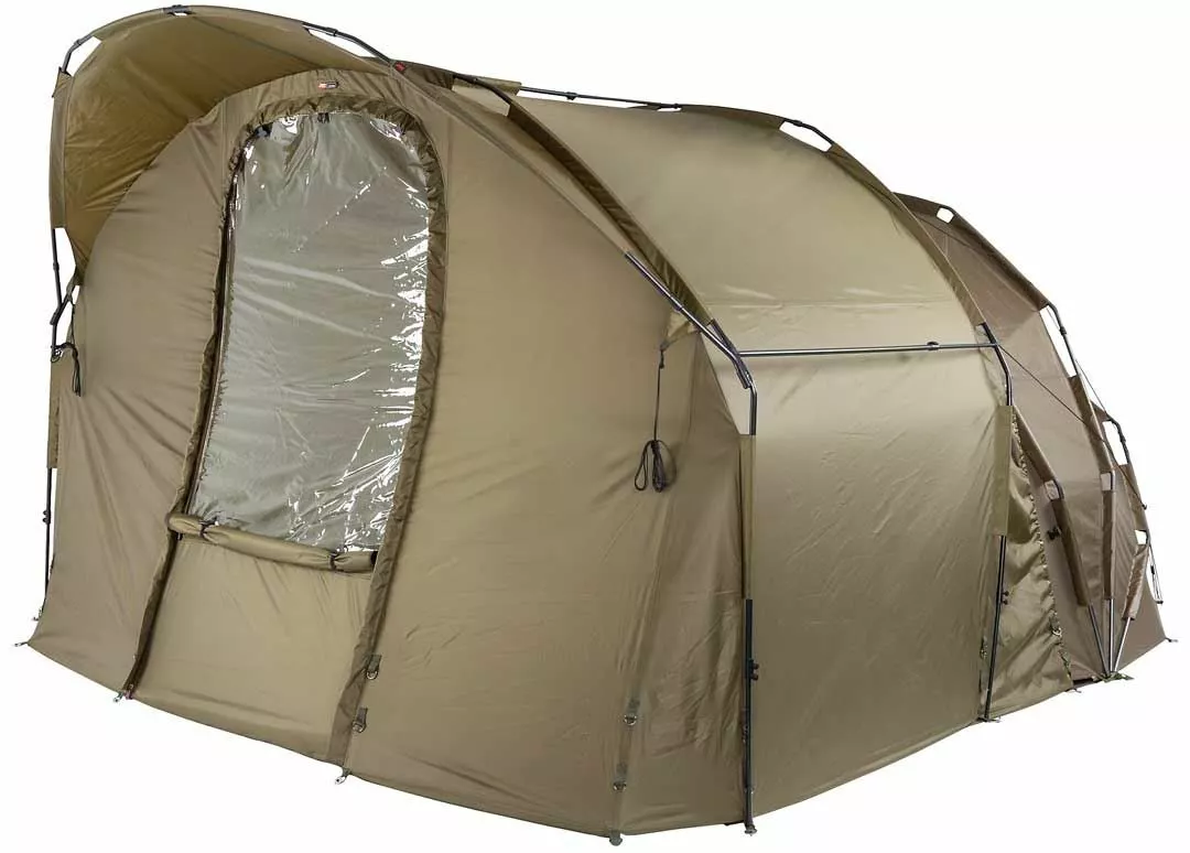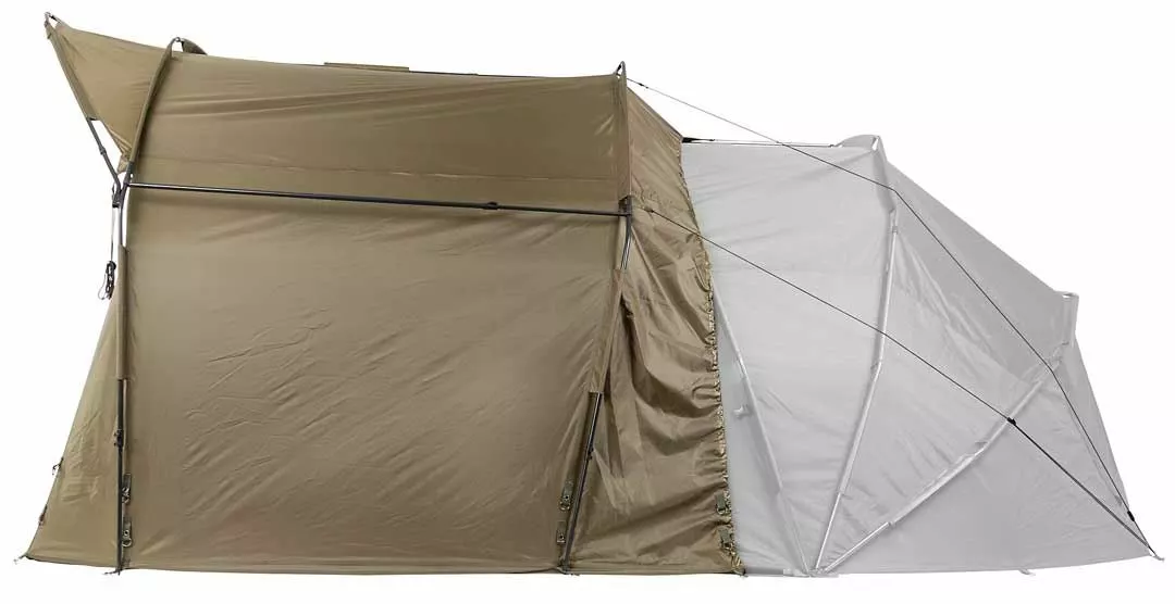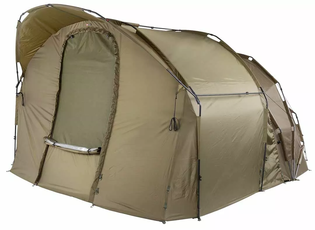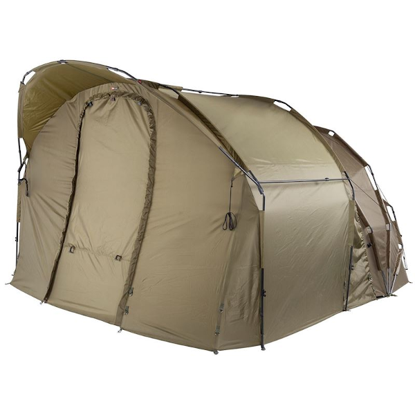 Ideal to use as a staging and cooking area when the weather is bad, as well as a handy changing area to get out of wet clothing and boots, with enough space to stand upright helping keep the sleeping area from getting wet and dirty. This unique entrance system extends to fit any sized bivvy, offering a large living and cooking area that is perfect for longer sessions. Thanks to the clever design the height can be adjusted to fit either a compact 1-man bivvy or an oversized continental dome. It offers enough room for multiple people to sit in and lends itself very well to accommodate extra guests during the night.