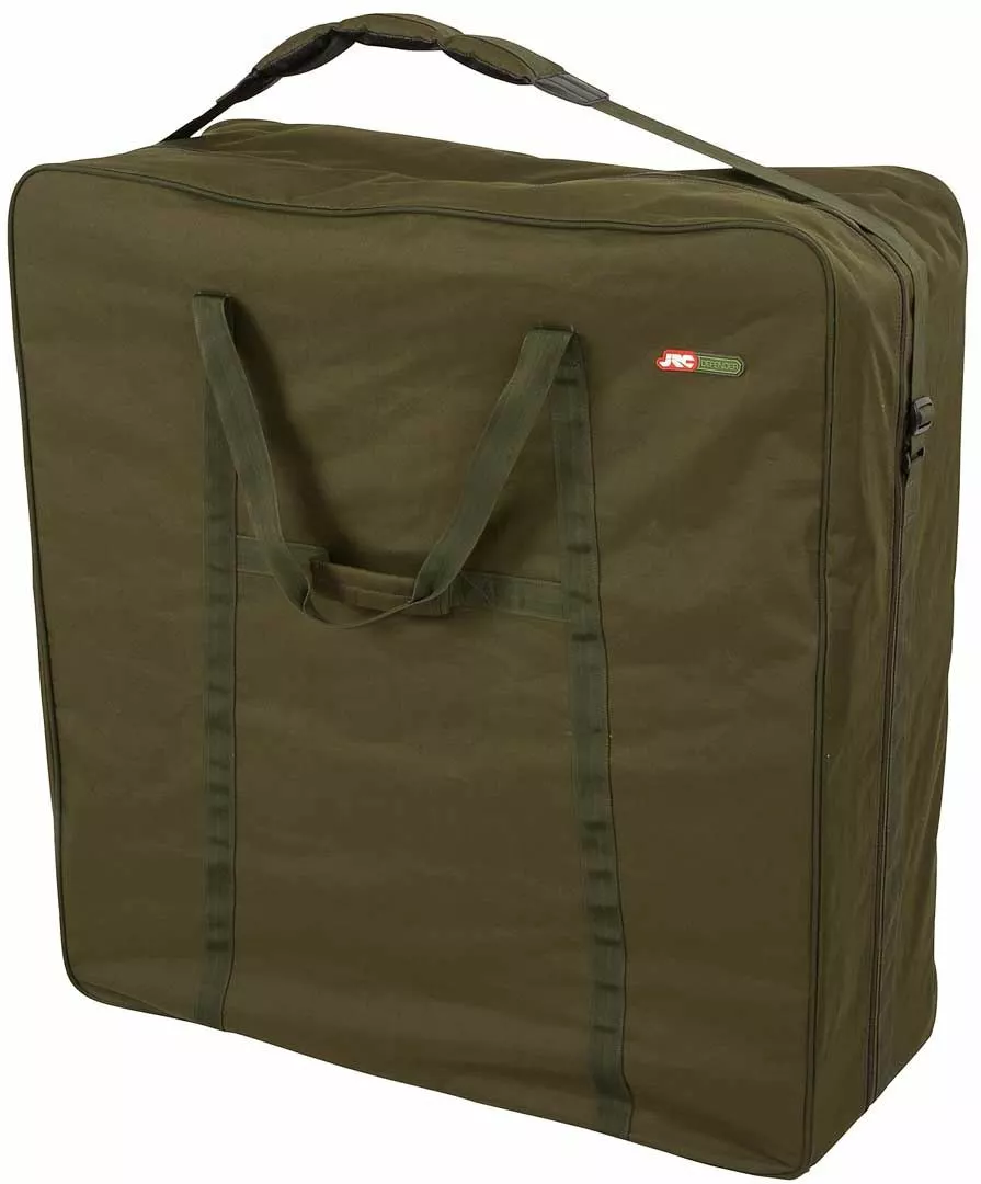 Constructed from hard wearing and water resistant 500D green polyester, this provides a waterproof carrier for standard and compact sized models of bed chairs. It features handy webbing grab handles to make loading into your car or barrow a little easier.