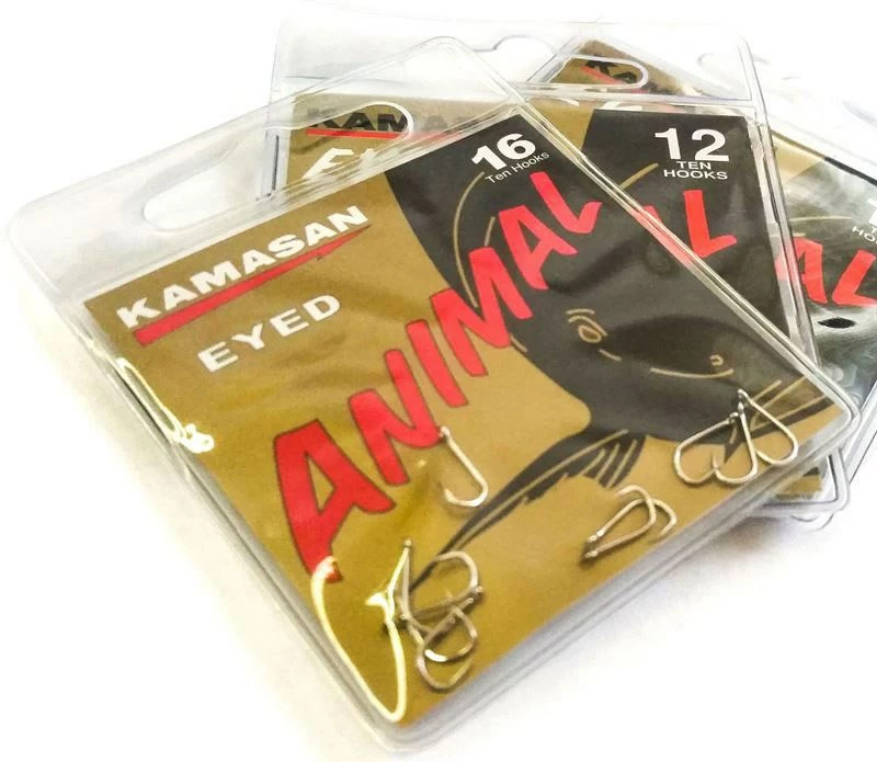 Kamasan Animal Barbless Eyed Hooks, the ideal big fish and bagging up hook for carp, barble, tench, chub etc. With a curved beak point greatly reduces the chances of gaping and provides an ultra secure hook hold.