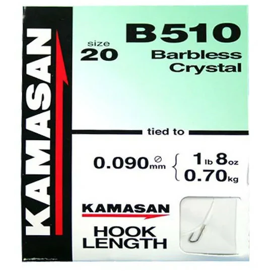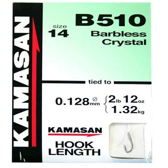 The Kamasan barbless B510, with the same classic crystal bend as the B520 Whisker Barb. An extremely safe shape for a barbless hook providing a good secure hook hold.