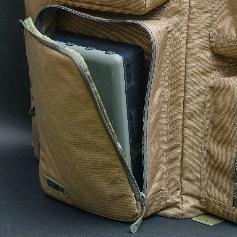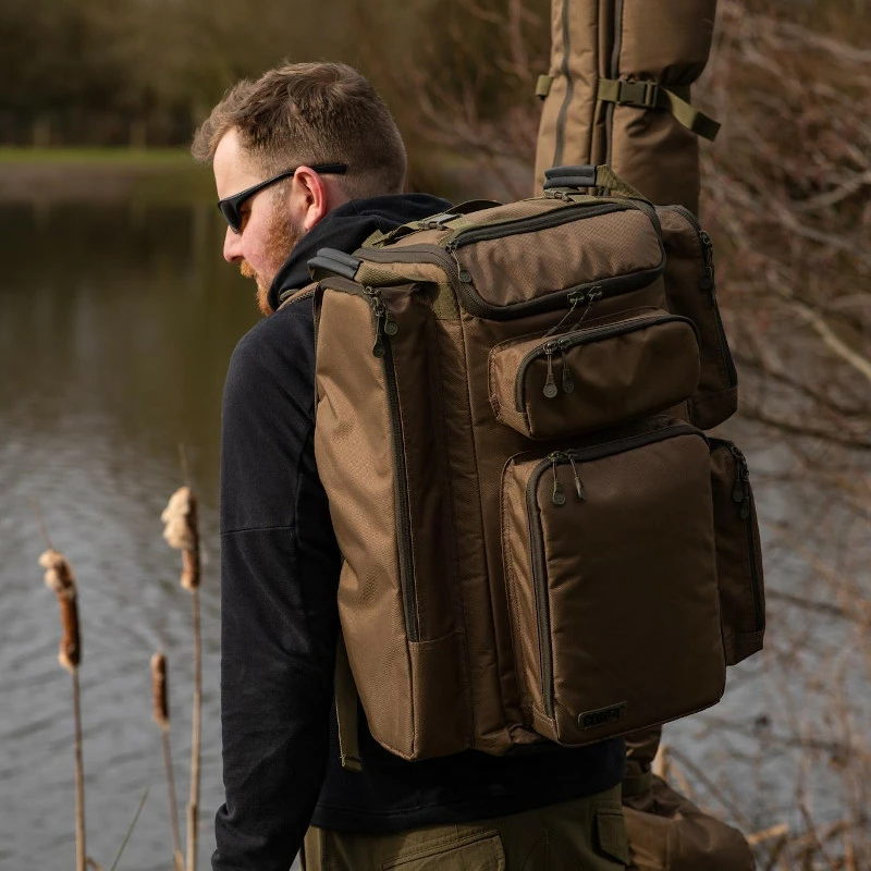 As well as the generous main storage compartment, you get four outer pockets designed to take the Compaq 100, 110 and 125 EVA pouches, plus a front pocket that will comfortably fit a Korda tackle box. An additional zipped pocket inside the main compartment gives you a handy place to store your wallet and keys while you’re fishing.