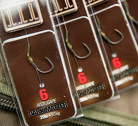 Korda Dark Matter Carp Rigs, super strong reliable ready tied rigs put together with top quality Korda components. Available in both barbed, or barbless versions. They come supplied with extender hair stops which make it compatible with a wide variety of different sized baits and allows you to change the length of the hair as required, giving you complete fishing flexibility. Â