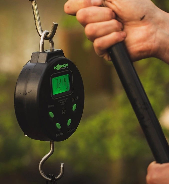 Designed in collaboration between Korda and Reuben Heaton to give you a set high performance reliable digital weighing scales. Engineered to cope with challenging weather and conditions with a sealed waterproof, shockproof high quality stainless steel build. They will happily give you a pinpoint accurate reading on fish of up to 132lb/60Kg, in 1oz/25g increments. With an easy to read screen with a green backlight so you can easily see them in low light and dark nights. Very simple to use with a tare facility to zero your weigh sling. They also have the ability to store up to 50 individual weights into memory.