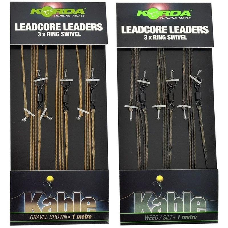 Korda’s Kable Ring Swivel Leadcore Leaders developed for use with either in-line lead set ups or lead clip arrangements. The Leader comprises a 1m length of Kable lead core spliced to a size 8 Ring Swivel which is glued for security.