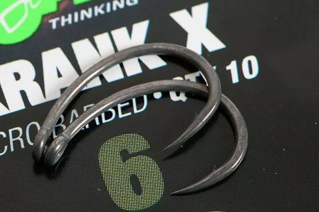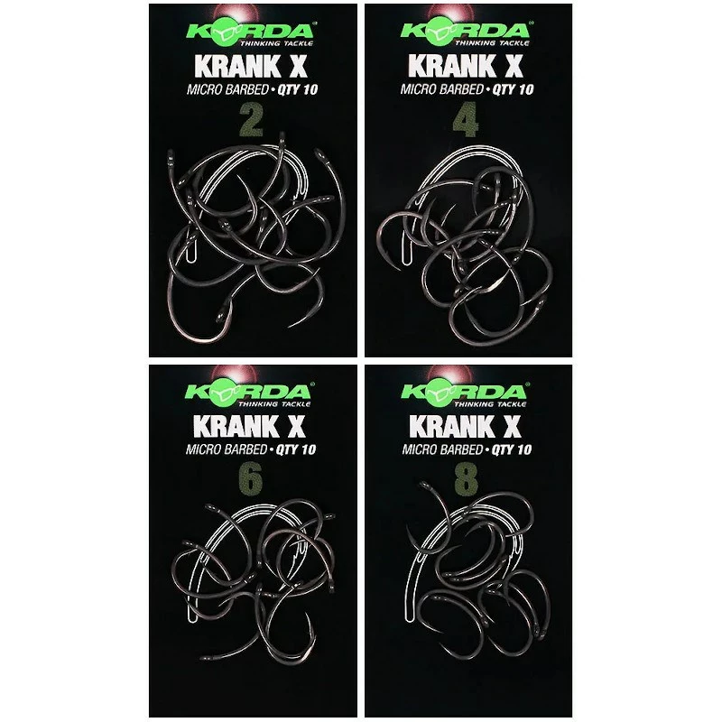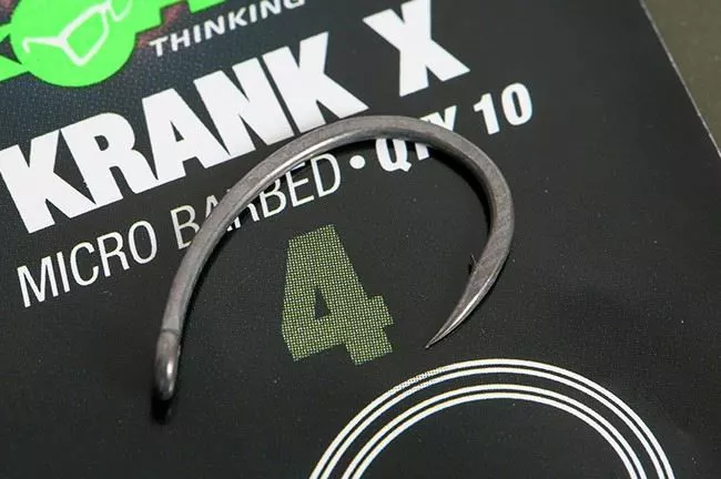 Korda Krank X Barbed,  the big brother to original well known pattern. It shares the familiar shape of standard version but features a heavier gauge wire. This makes it considerably stronger and ideal for big fish waters or continental fishing.