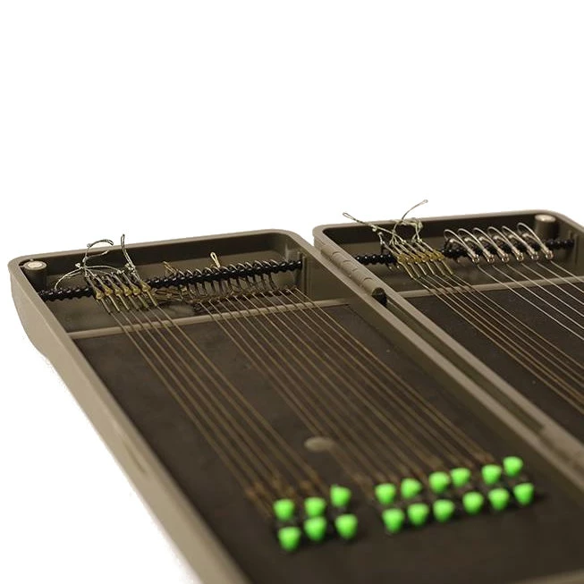The Korda Large Rig Safe, built to an incredibly high standard this box oozes quality as soon as it enters your hands. Holding up to 90 rigs, thanks to one side of it featuring double-ended storage, and the clever magnetic locking system means that it will never come open accidentally during transit, but is very easy to open when you want to, even with cold hands. Inside a specially machined, ridged aluminium bar retains your the hooks, keep them razor sharp until you’re ready to use them. This has been shaped so that if you’re using a curved shrink tube kicker it retains its bend if you store them point upwards. Supplied with 30 standard pins to hold swivels or loops in place on the high density foam inner, and prevent tangles, or if you prefer to tie your rigs to the right length when you arrive at the water, then you can make use of the 20 double pins which will keep those in place, rather than in a knotted mess!